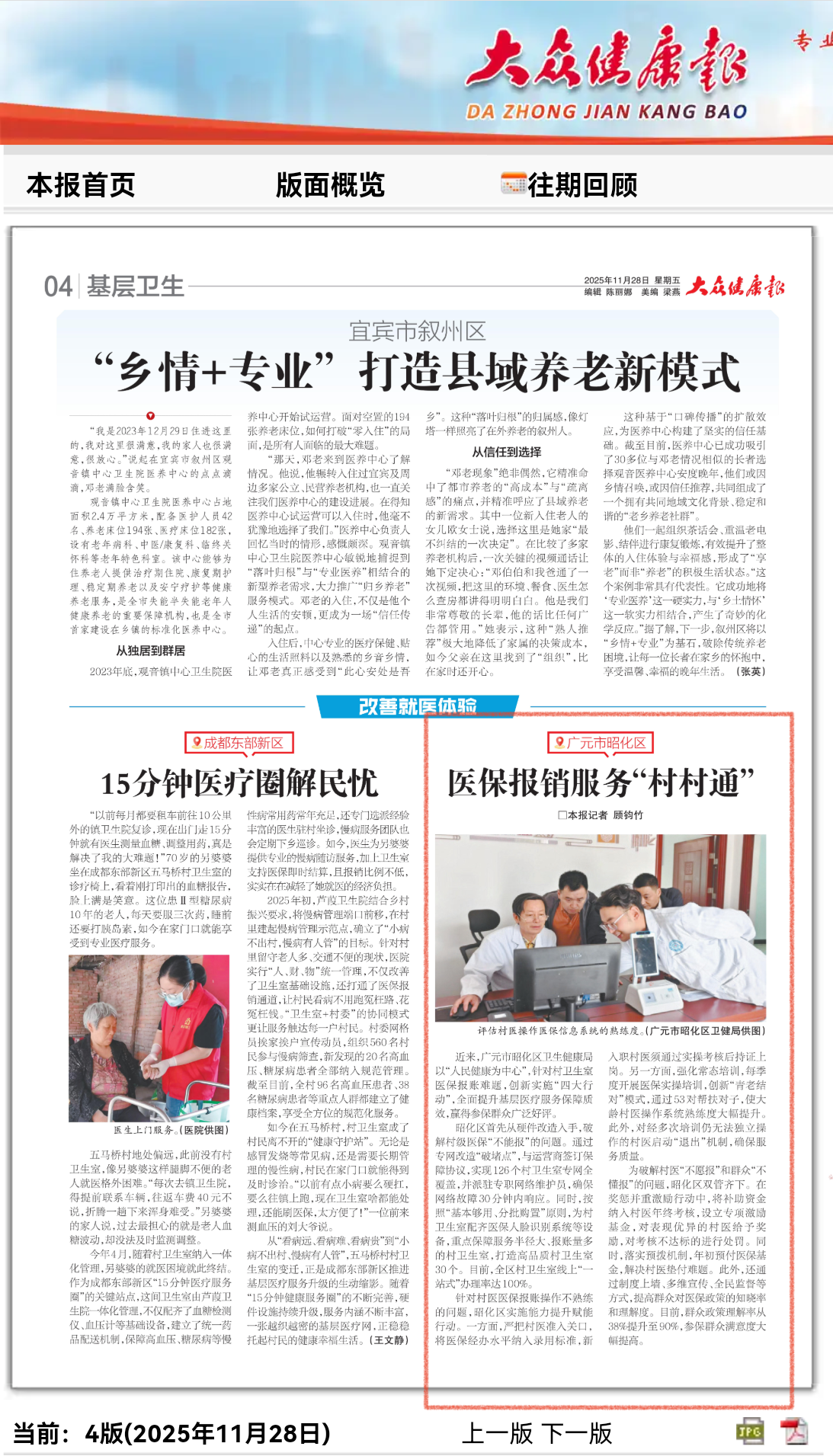 近来,广元市昭化区卫生健康局以“人民健康为中心”,针对村卫生室医保报账难题,创新实施“四大行动”,全面提升基层医疗服务保障质效,赢得参保群众广泛好评。