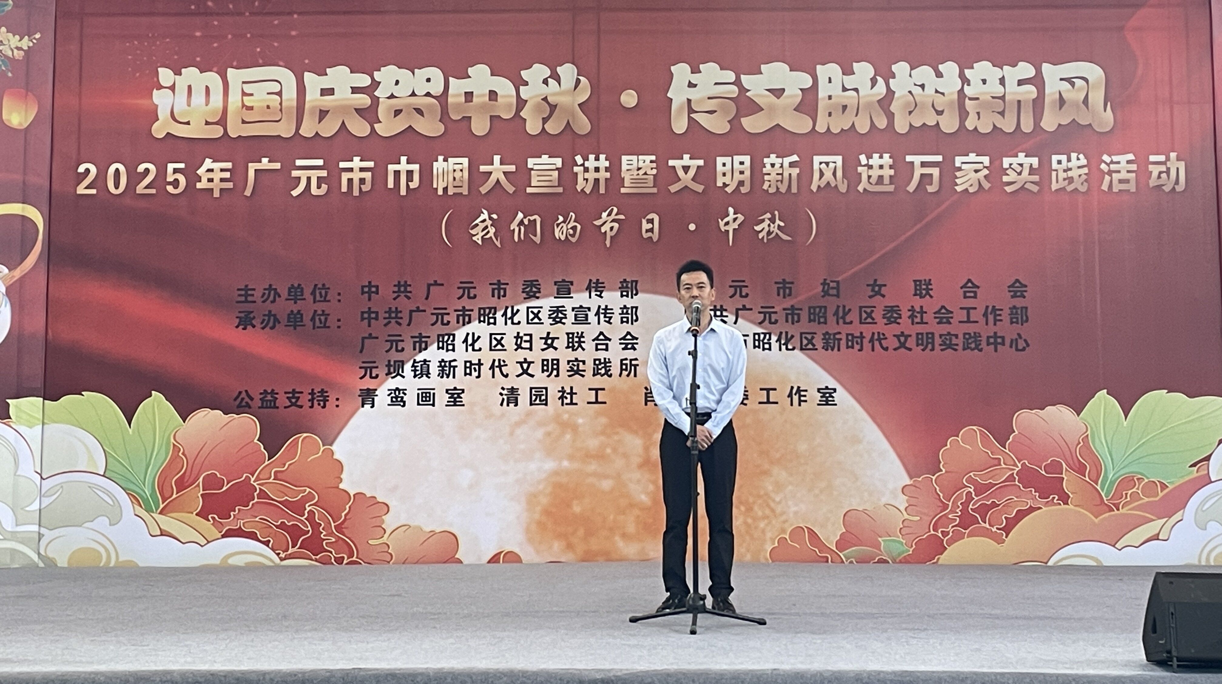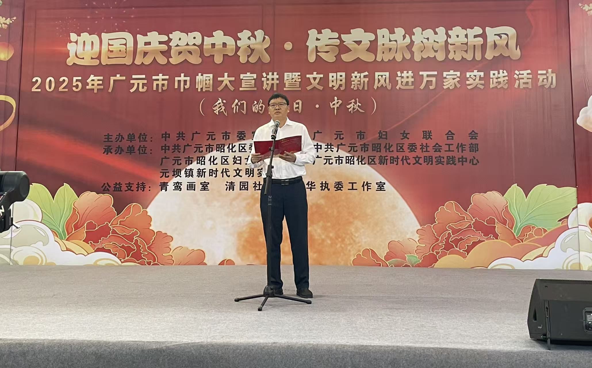 昭化区委常委、区委副书记张玉全致辞,他指出昭化区始终贯彻习近平总书记关于妇女儿童工作和精神文明建设的重要指示精神,依托国庆、中秋等传统佳节,精心策划形式多样、内容丰富的群众性主题活动,在传承中华优秀传统文化、厚植家国情怀的同时,不断拓展“巾帼大宣讲”内涵,让“两个确立”的决定性意义深入人心,将增强“四个意识”、坚定“四个自信”、做到“两个维护”融入血脉、见诸行动。