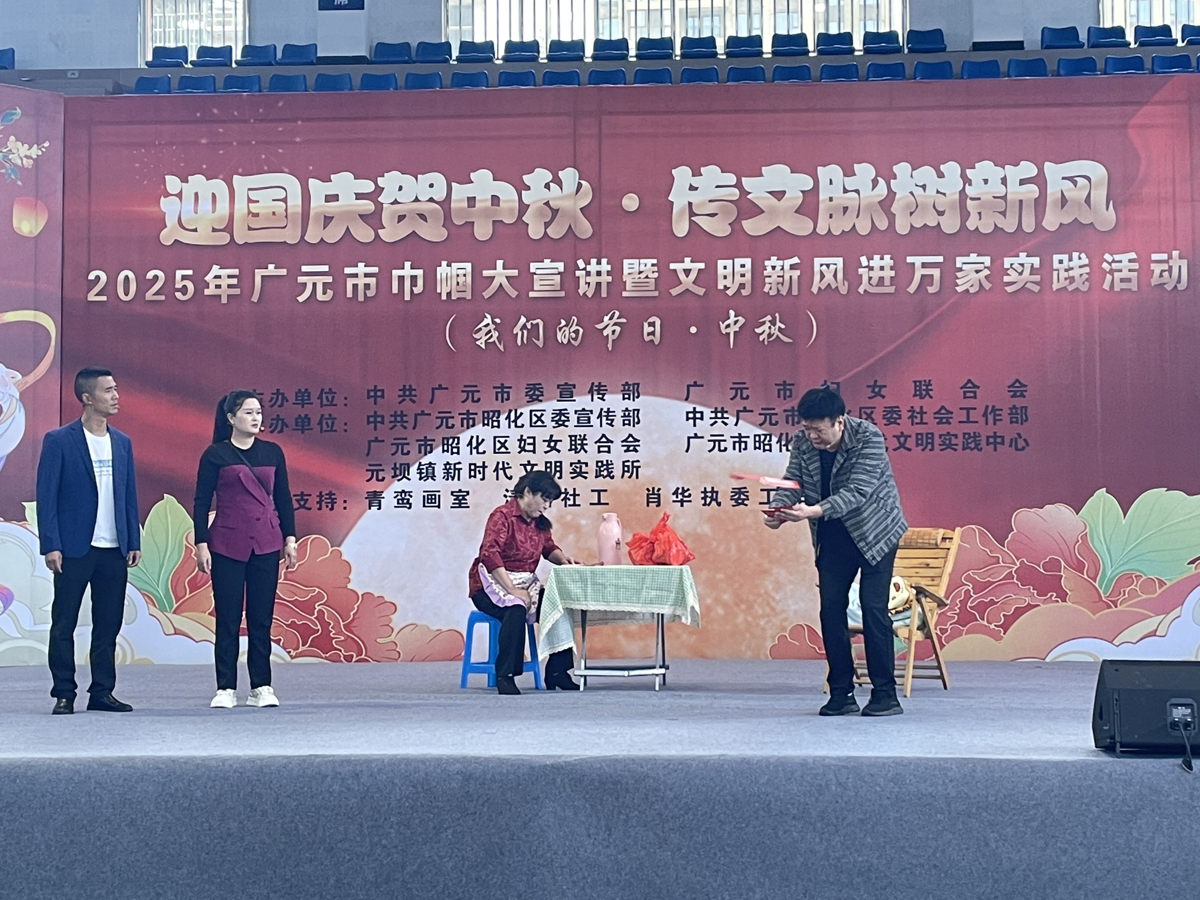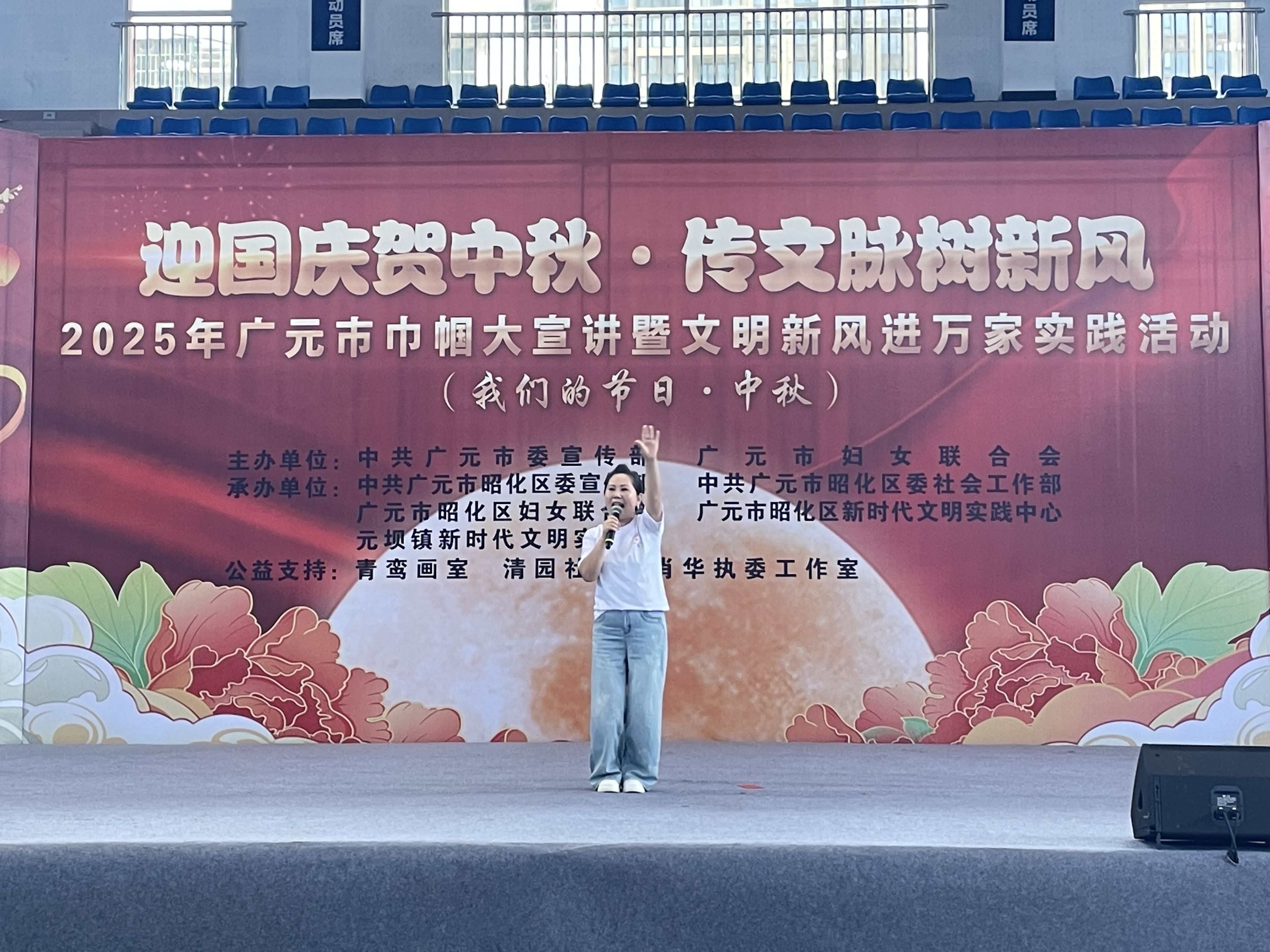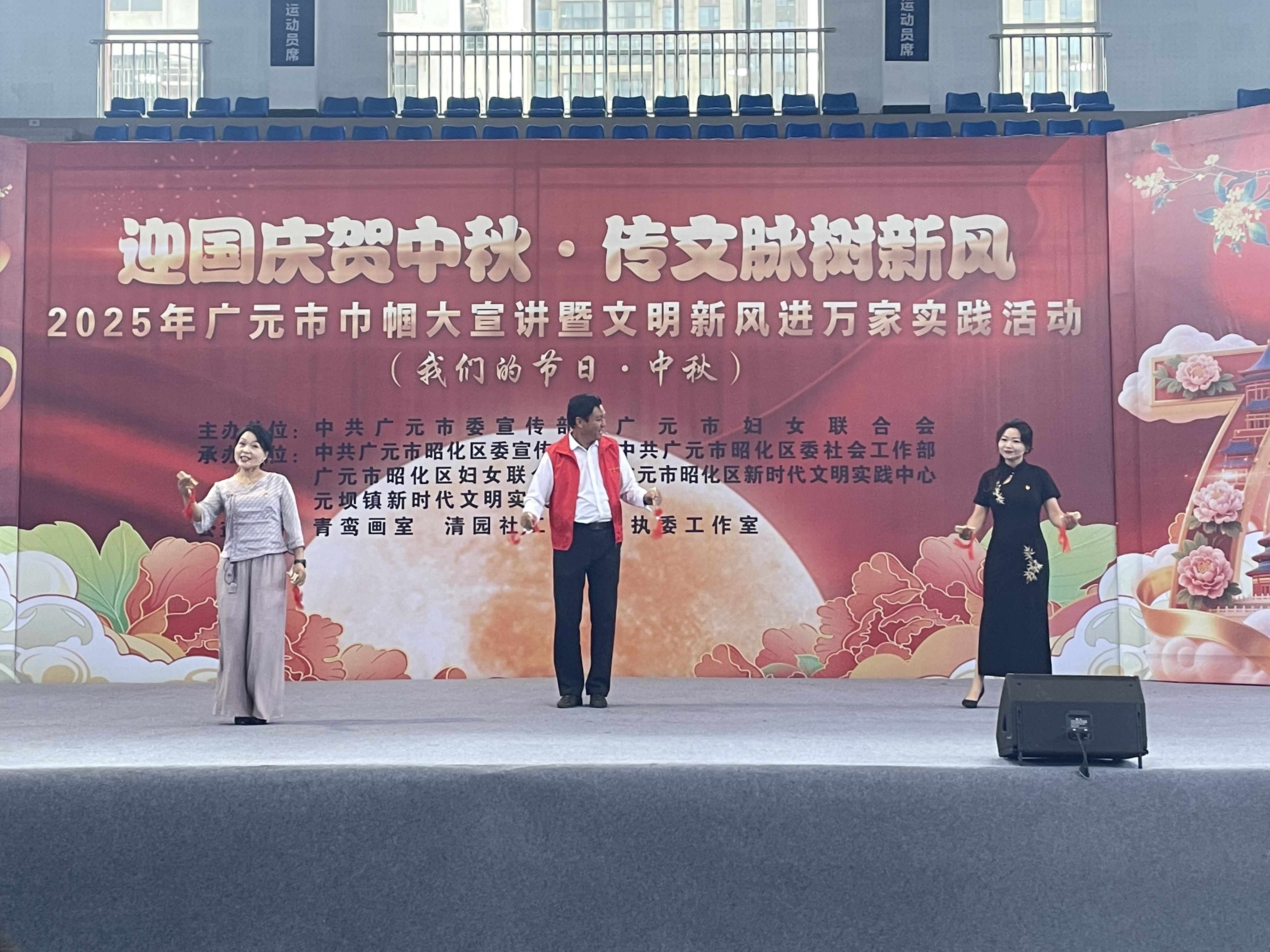 9 月 29 日上午,由广元市委宣传部、广元市妇女联合会主办,昭化区委宣传部、区委社会工作部、区妇联等单位承办的“迎国庆贺中秋·传文脉树新风”2025年广元市巾帼大宣讲暨文明新风进万家实践活动在昭化区澳援体育中心启动。广元市妇联党组书记、主席马丽,广元市委宣传部副部长胡斌,昭化区区委常委、副书记张玉全出席活动,区级各部门、元坝镇 300 余名干部群众参加活动。