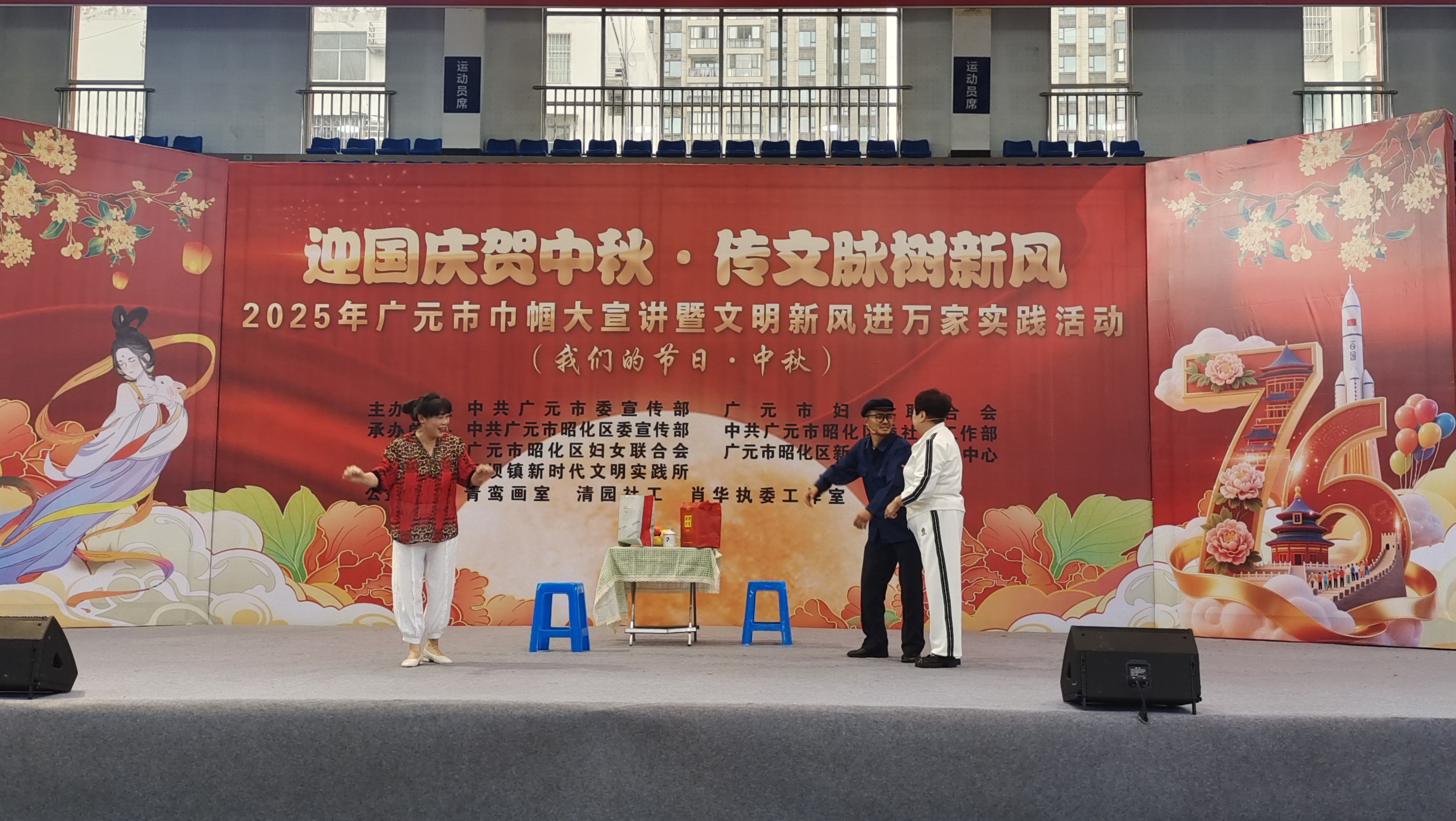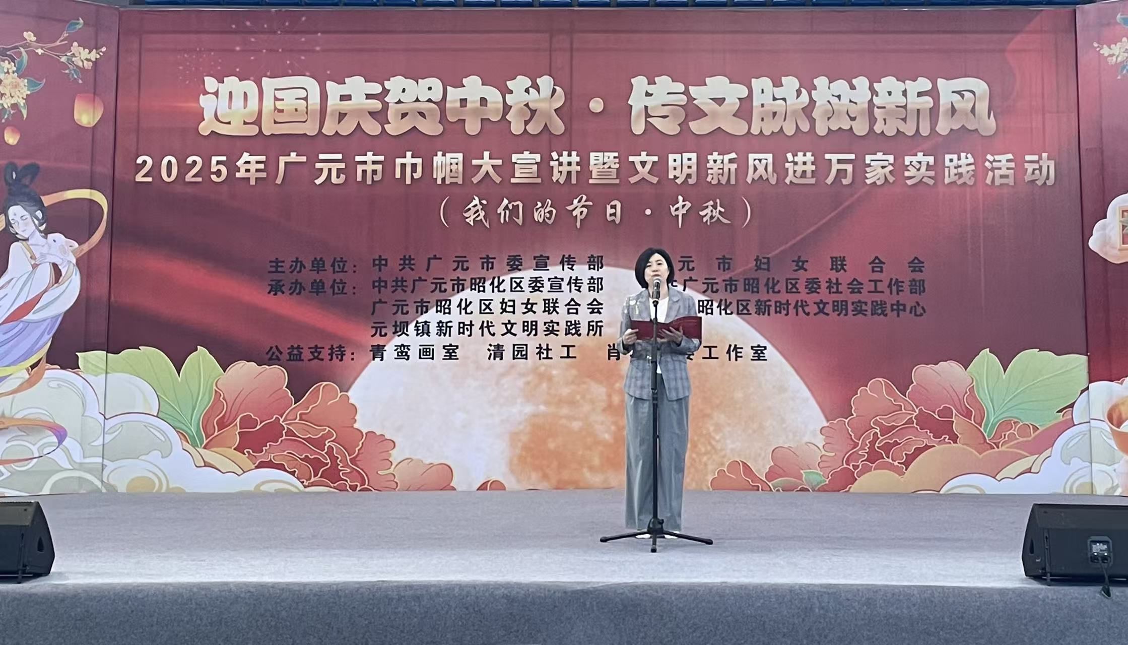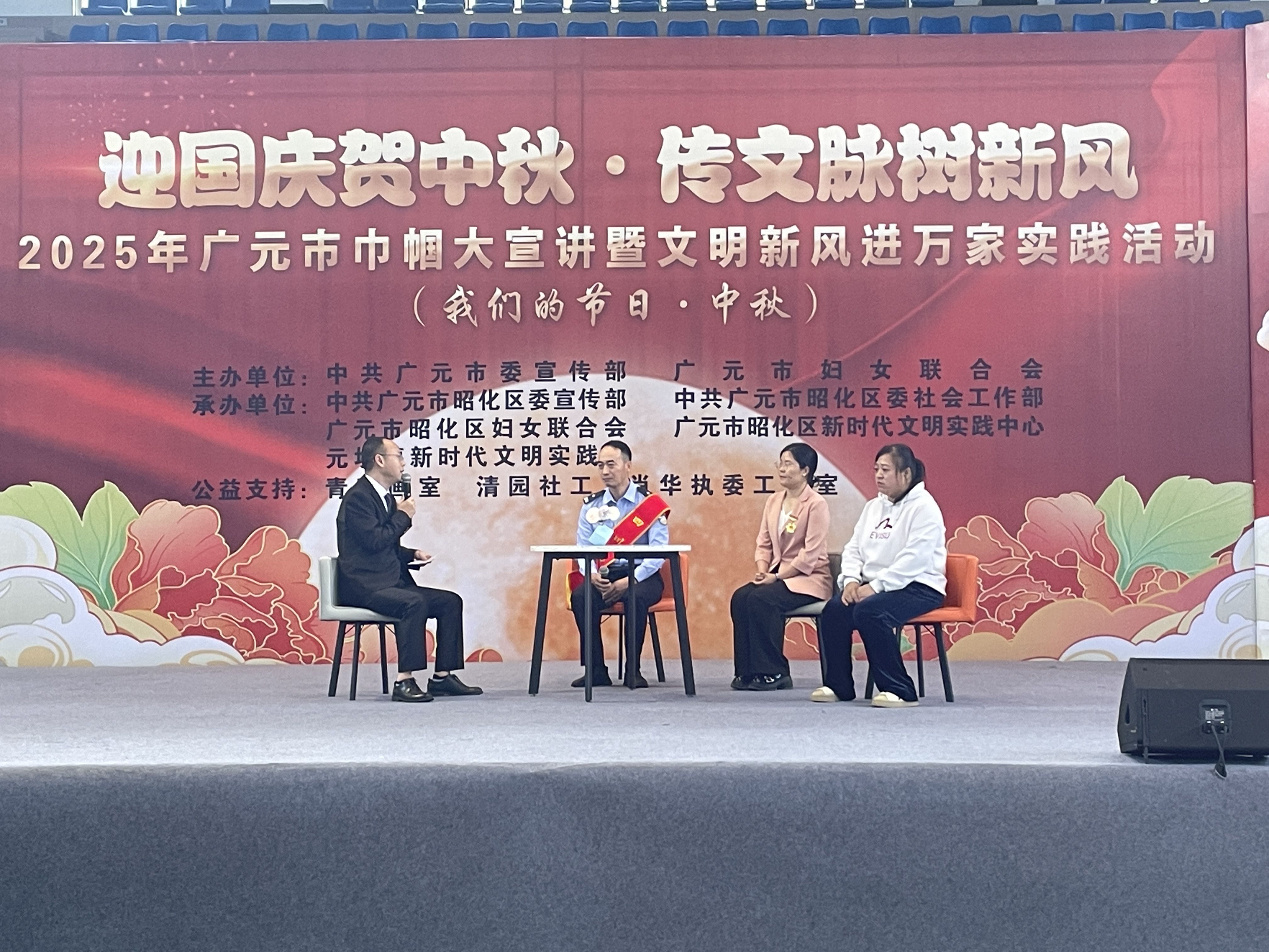 9 月 29 日上午,由广元市委宣传部、广元市妇女联合会主办,昭化区委宣传部、区委社会工作部、区妇联等单位承办的“迎国庆贺中秋·传文脉树新风”2025年广元市巾帼大宣讲暨文明新风进万家实践活动在昭化区澳援体育中心启动。广元市妇联党组书记、主席马丽,广元市委宣传部副部长胡斌,昭化区区委常委、副书记张玉全出席活动,区级各部门、元坝镇 300 余名干部群众参加活动。