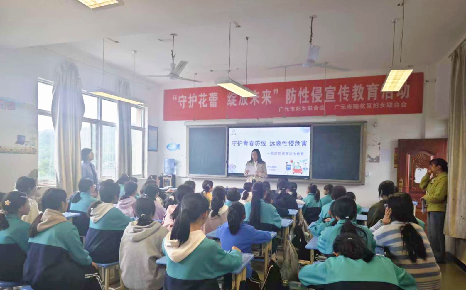 为深入贯彻落实习近平总书记关于未成年人保护工作的重要指示批示精神,进一步增强青少年的自我保护意识,提高防范性侵害的能力,10 月 17日,昭化区妇联在柏林沟镇举办了“守护青春防线远离性侵危害”宣传教育活动,柏林沟镇小学全体师生及家长代表共120余人参加。