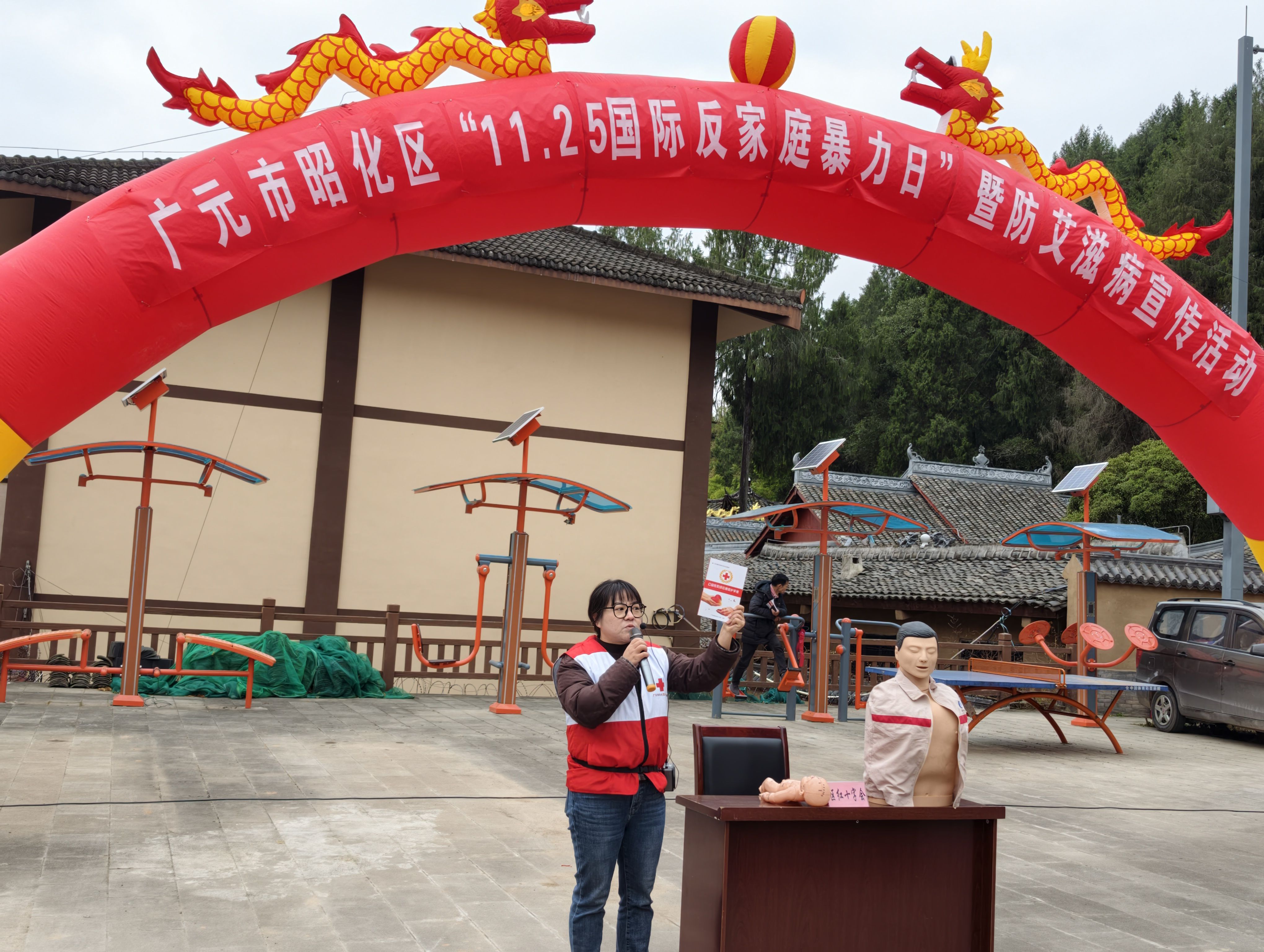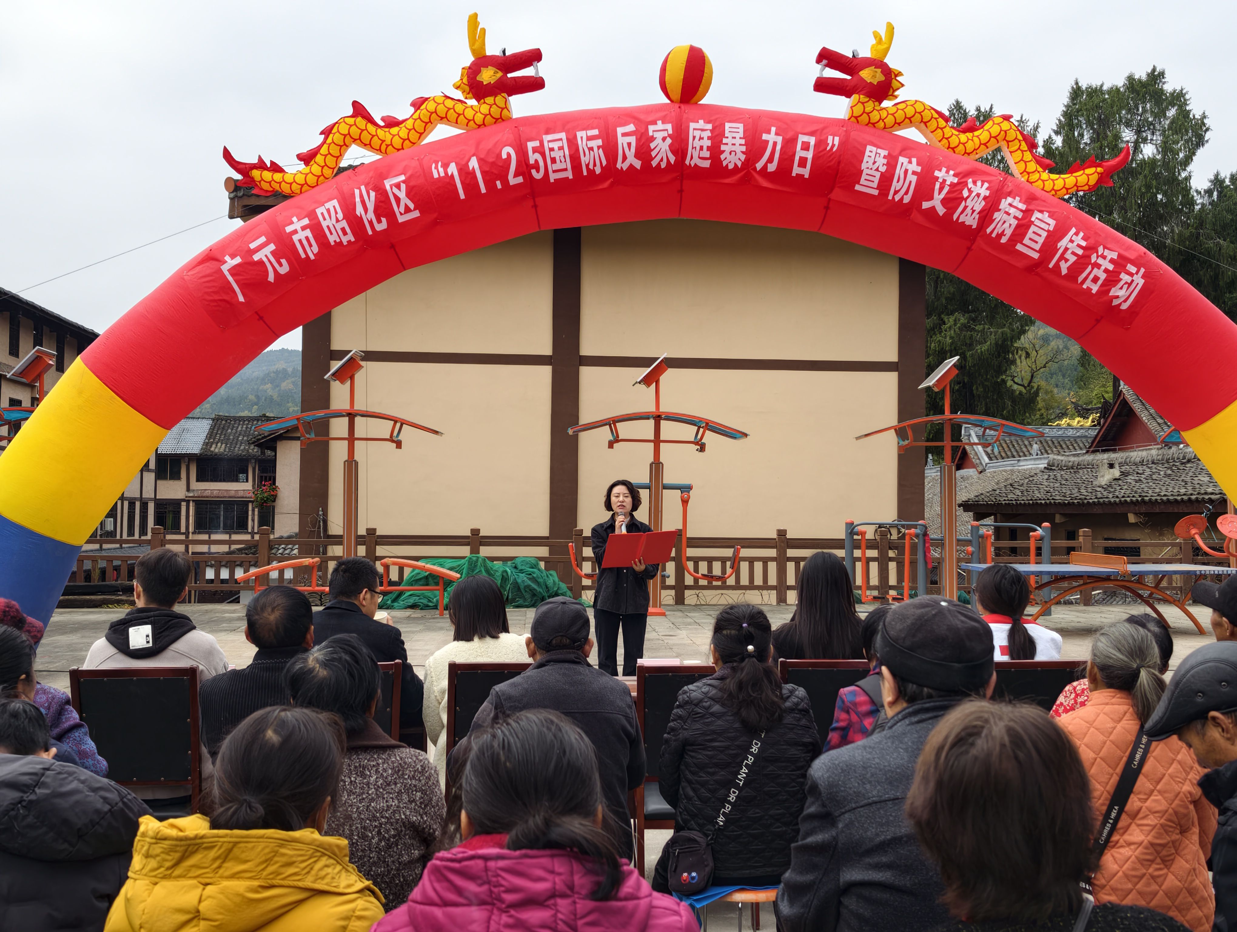活动在非遗表演—金钱棍中拉开序幕,现场氛围热烈。昭化区妇联主席李欣宣读反家暴倡议书,呼吁广大妇女群众凝聚共识、携手并肩,坚决抵制家庭暴力,共同守护家庭和谐。区政府副区长王煜蕊在讲话中强调,反家庭暴力与艾滋病防治工作直接关系妇女儿童身心健康、家庭幸福安宁和社会和谐稳定,意义重大、责任重大。各家庭成员要牢固树立对家庭暴力“零容忍”理念,主动学习艾滋病防治相关知识,筑牢家庭健康防护第一道防线;各相关单位要持续深化部门协同联动,不断强化宣传教育引导,营造全社会反对家庭暴力、重视艾滋病防治的浓厚氛围,切实为妇女儿童筑牢安全与健康的双重防护屏障。