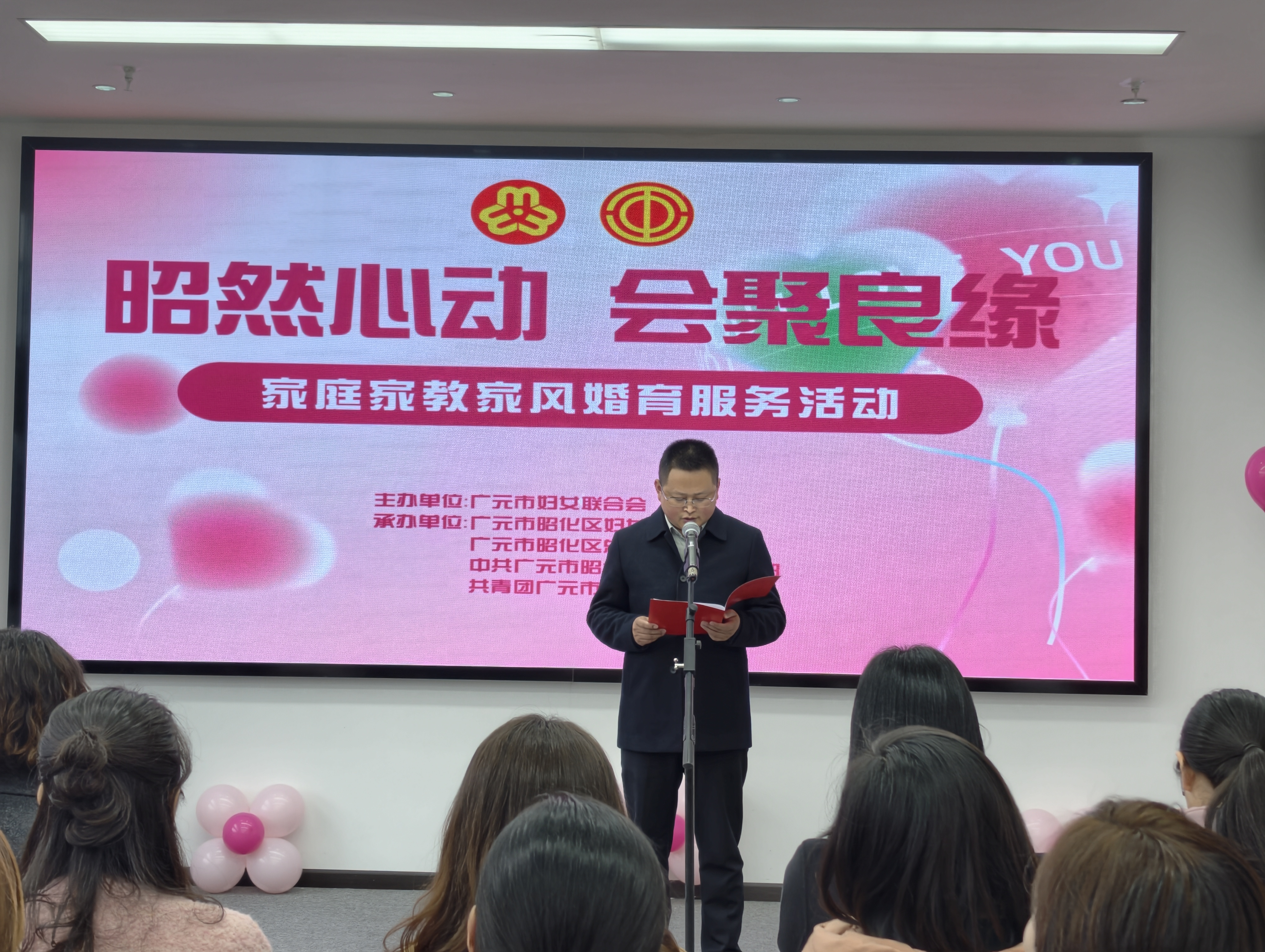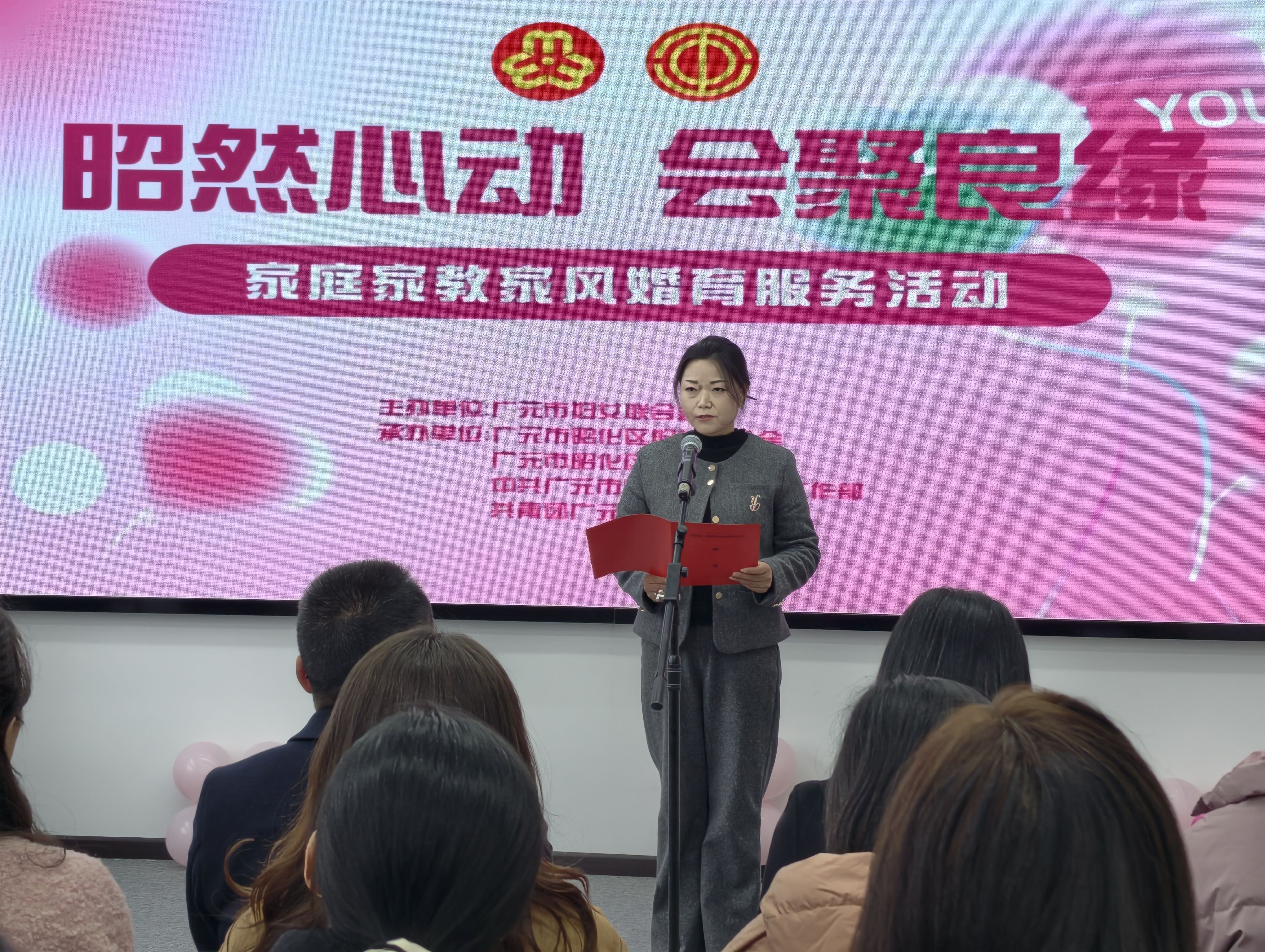 为深入贯彻习近平总书记关于家庭家教家风建设的重要指示精神,培育新型婚育文化,12月11日,由昭化区妇联、区总工会联合主办的“昭然心动・会聚良缘”家庭家教家风婚育服务活动暨青年交友活动在家居产业城浪漫启幕。区委常委、组织部部长、区总工会主席安亚斌,区政府副区长王煜蕊出席活动。全区各镇、机关企事业单位的百余名优秀单身青年及“曌嬢嬢”婚恋志愿服务队成员共赴美好之约。区妇联党组书记、主席李欣主持活动。