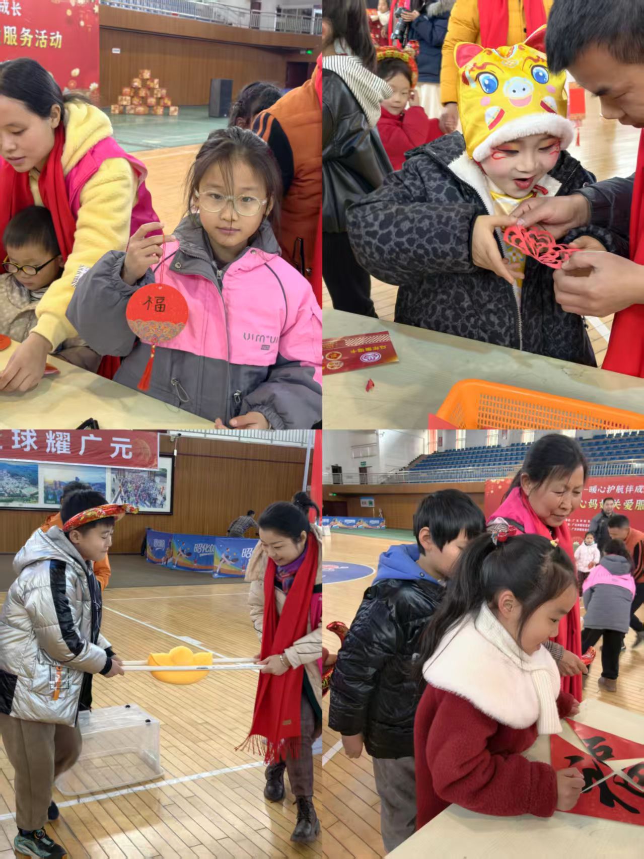 本次活动还开展了充满年味的互动体验游戏。现场精心设置马年送“福”、“福”气连连、“福”花朵朵等八大特色活动区域。爱心妈妈与小朋友自由参与体验、抽取盲盒礼物。写福字区域笔墨飘香,剪窗花区域巧思灵动,亲子互动区域欢声笑语不断,每一个场景都充满温情与欢乐。孩子们在尽情嬉戏的同时,沉浸式感受了优秀传统文化的独特魅力,更在携手参与中加深了与爱心妈妈之间的情感交流。