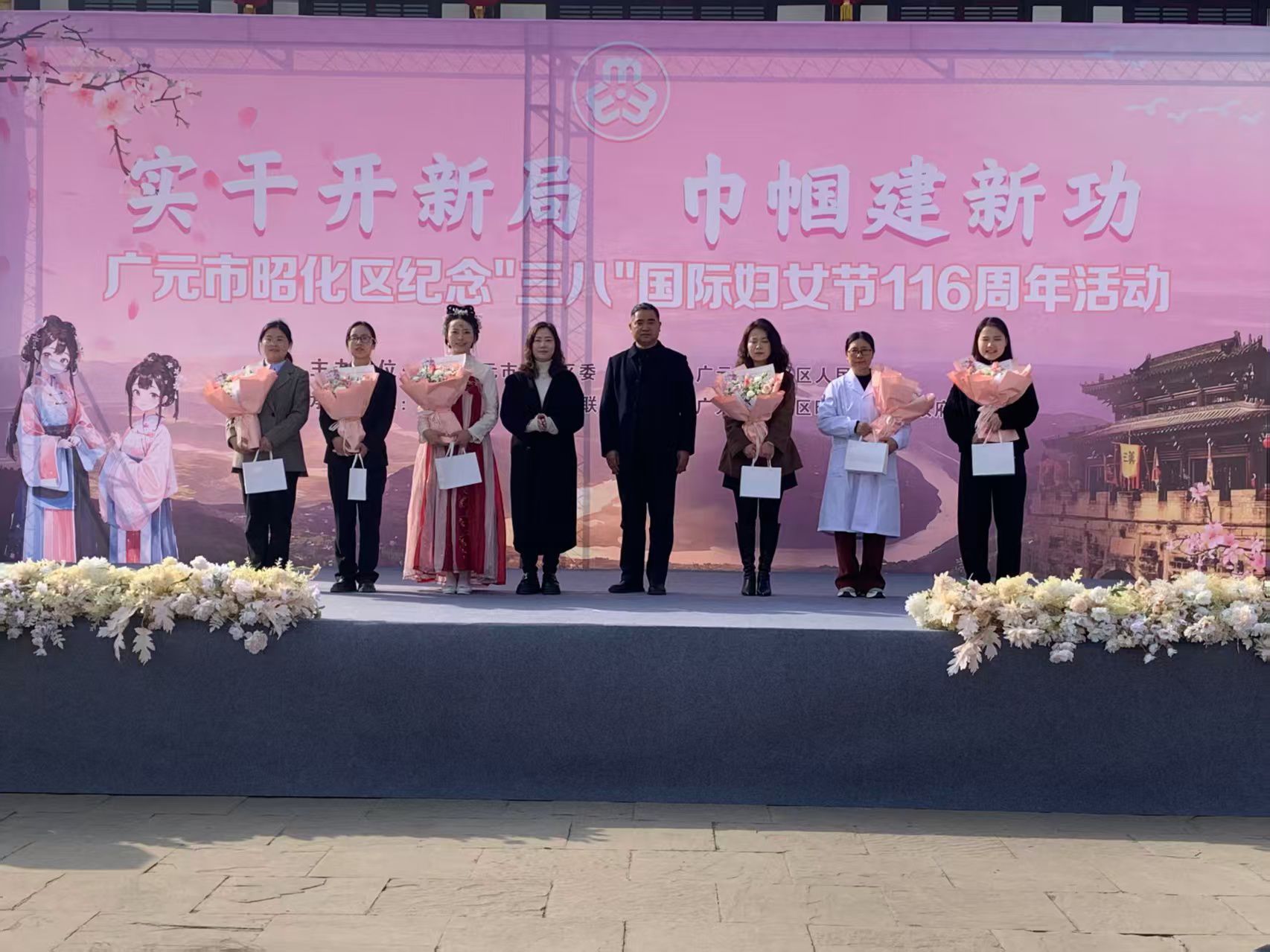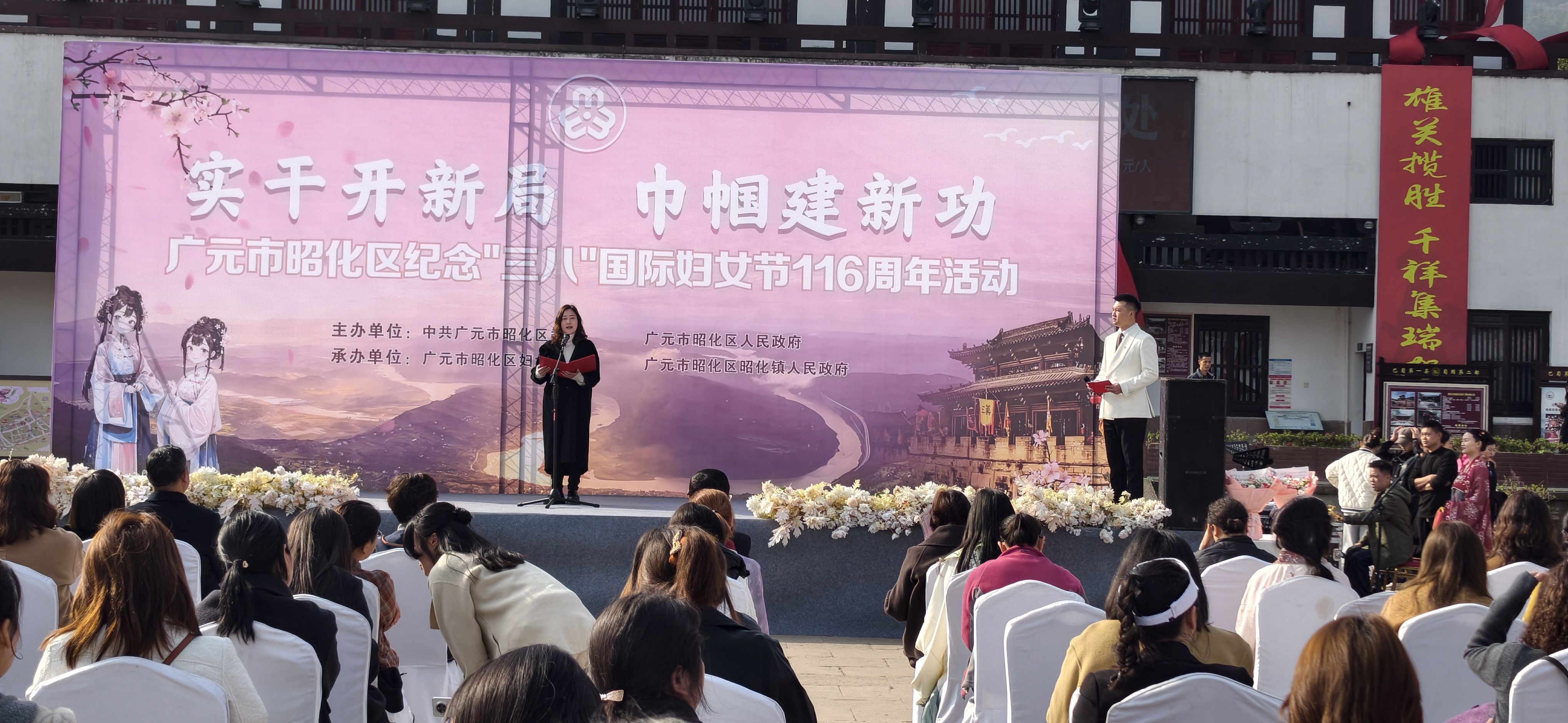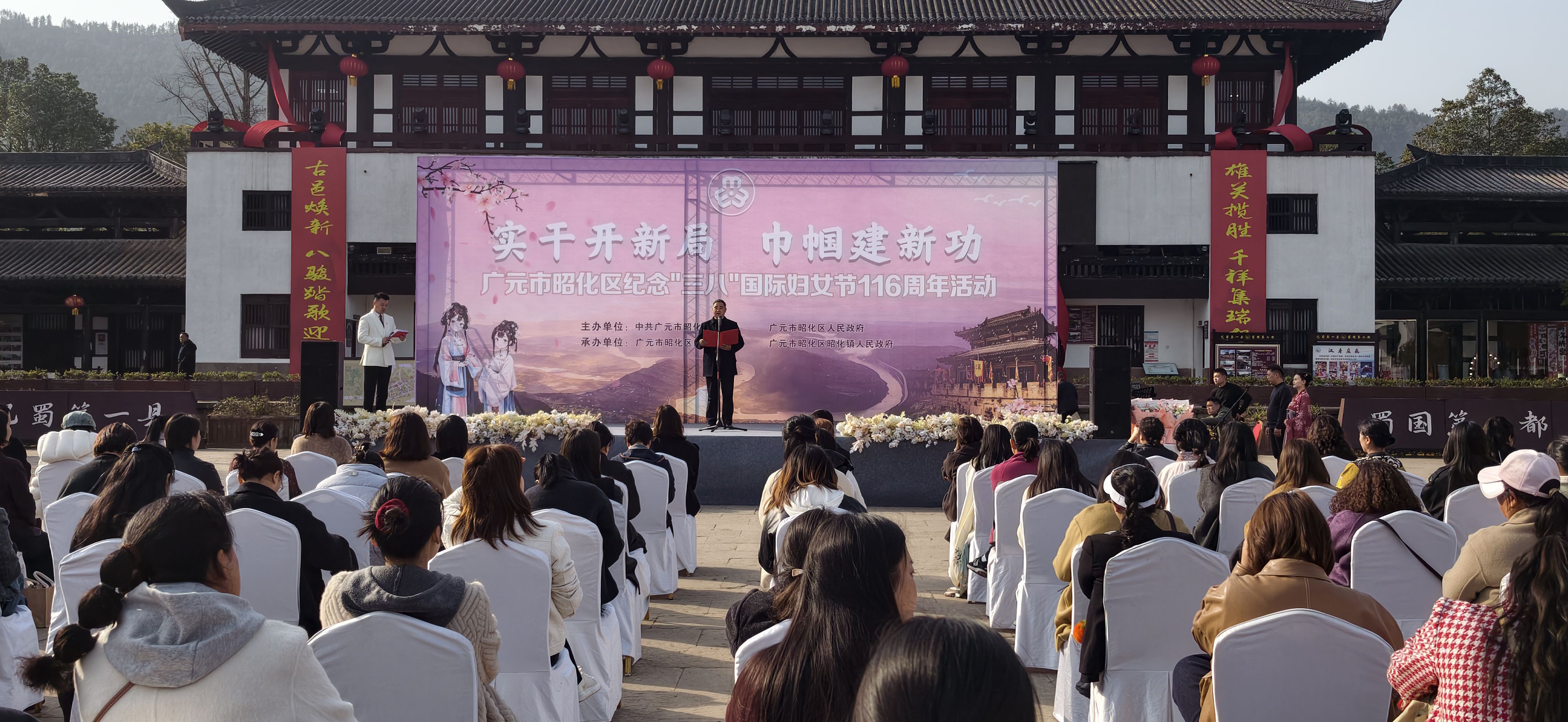 春和景明,芳华绽放。在第116个“三八”国际妇女节来临之际,3月5日,以“实干开新局 巾帼建新功”为主题的2026年“三八”国际妇女节纪念活动在昭化古城隆重举行。活动由广元市昭化区委、区人民政府主办,区妇联、昭化镇人民政府承办,区级各部门负责人及妇委会主任、各镇妇联主席、副主席,村(社区)女支部书记,三新领域妇委会主任代表170余人参加活动。市妇联党组成员、副主席徐胜兰,区政府副主席赵思彦应邀出席活动。