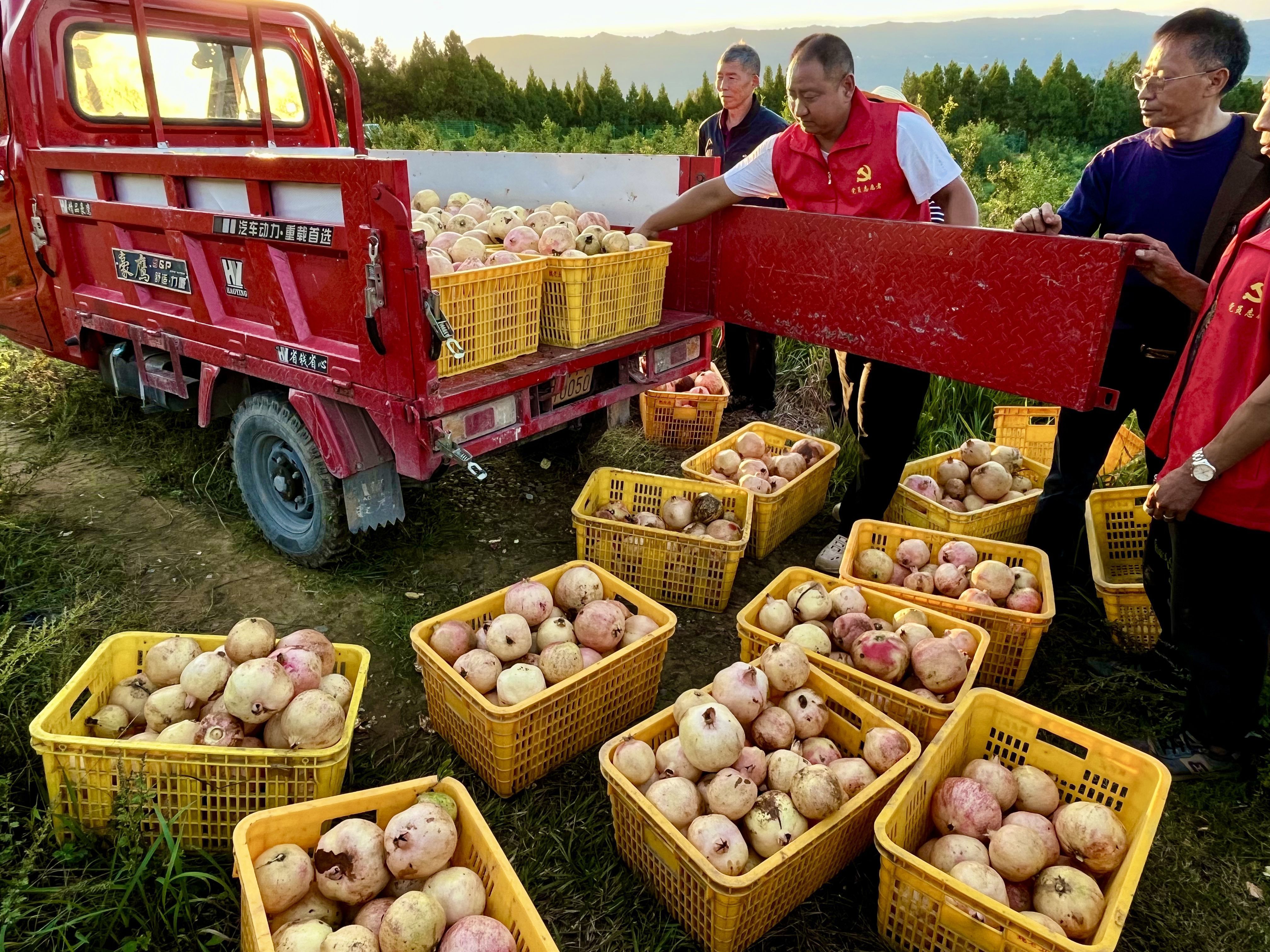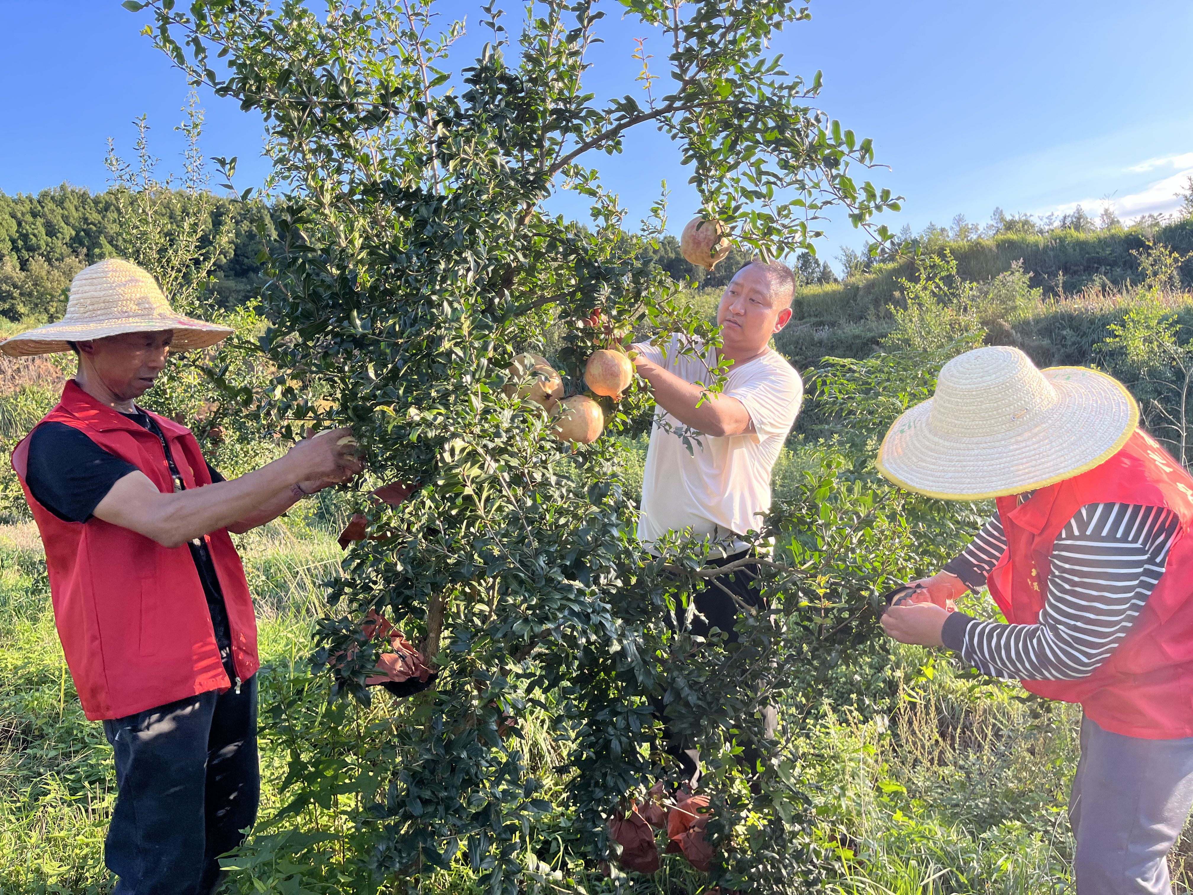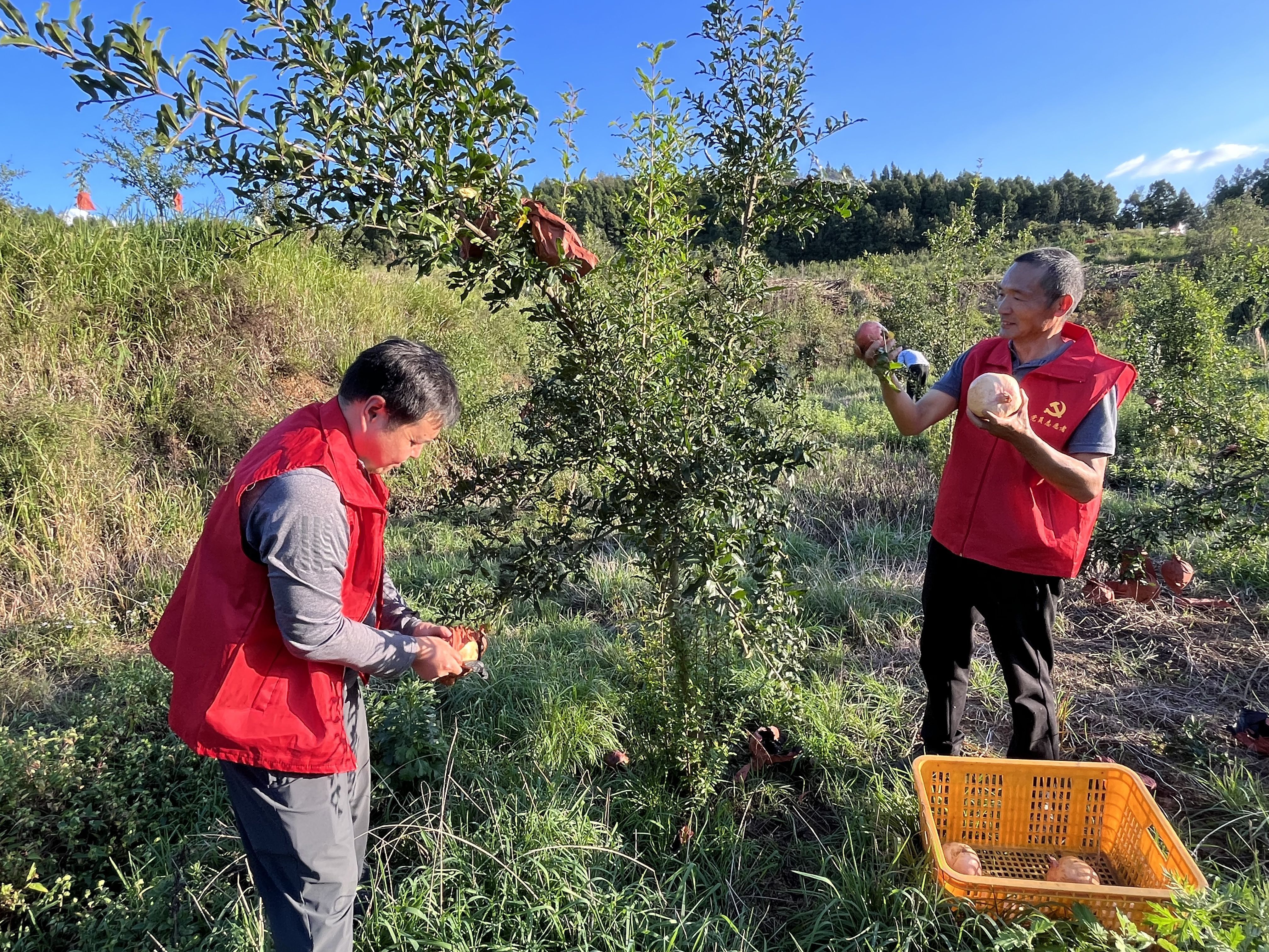 眼下正是青牛镇苏山村石榴园区软籽石榴成熟的旺季,饱满鲜红的石榴是苏山村今年集体经济重要的收入来源。但因劳动力不足,面临着石榴采摘不及时、可能错过最佳上市期的难题。了解到这一情况后,青牛镇新时代文明实践所迅速组织“助农志愿服务队”,号召党员干部、青年志愿者们深入田间地头,为园区解决燃眉之急。