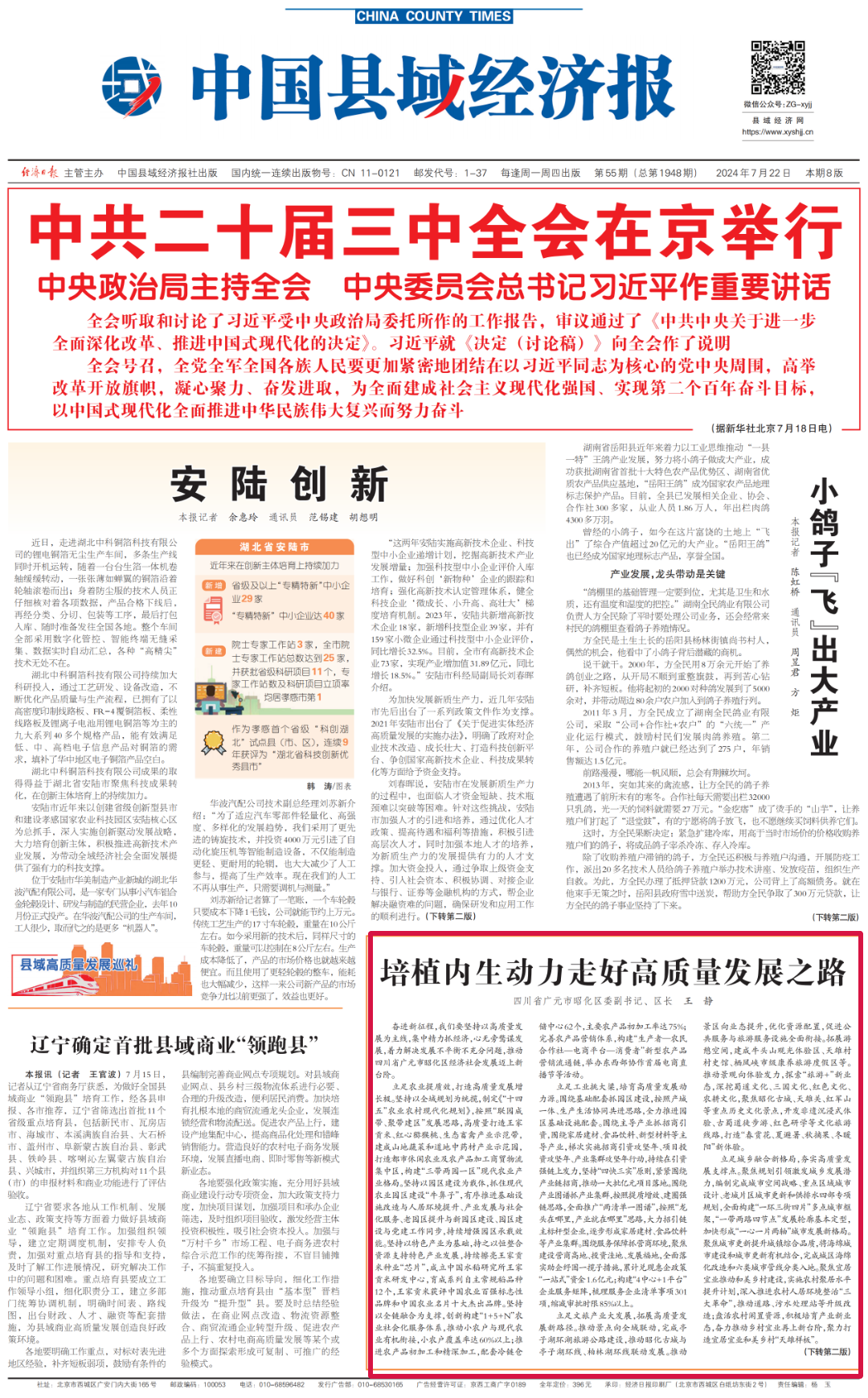 聚焦学习贯彻党的二十届三中全会精神及省委、市委、区委全会精神,重大主题宣传浓墨重彩、有声有色。区内整合开设“学习贯彻党的二十届三中全会精神”“牢记嘱托走在前 感恩奋进勇争先”“奋进强国路 阔步新征程”等专栏30余个,刊发消息、推文、短视频等36000余条。其中,“徒步古蜀道”网络宣传活动曝光量破1亿次。统筹各类宣传载体,宣传党的二十大精神、省委、市委、区委全会精神等5000余条次,完成G5、G75高速沿线、元坝主城区快速通道广告“上新”。