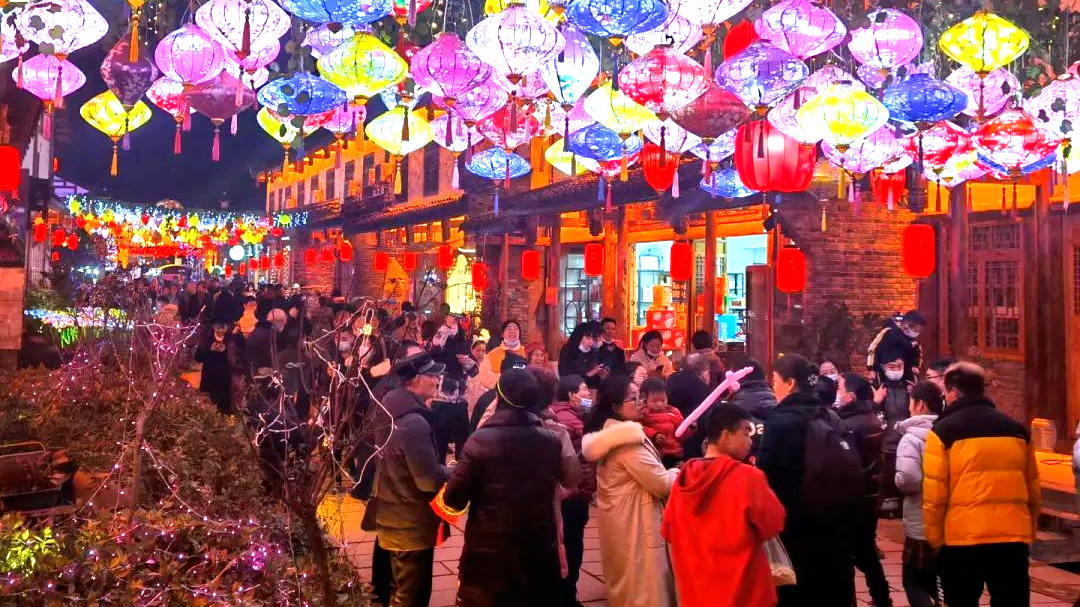 拍照打卡、品尝美食……夜幕降临,昭化古城内张灯结彩,青石长街旁的房屋屋檐上挂满了火红的灯笼,沿街商贩们的叫卖声此起彼伏,行人游客漫步在街巷间,正“沉浸式”感受古城的悠然自得和烟火气。