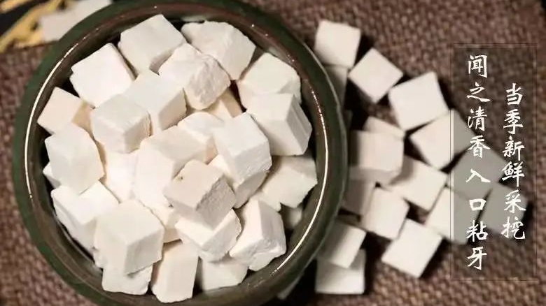 茯苓粉/丁,选用优质昭化茯苓,呈白色、浅灰色,性平、味甘、淡,含有三萜类、多聚糖类及卵磷脂、钾、镁等多种元素。
