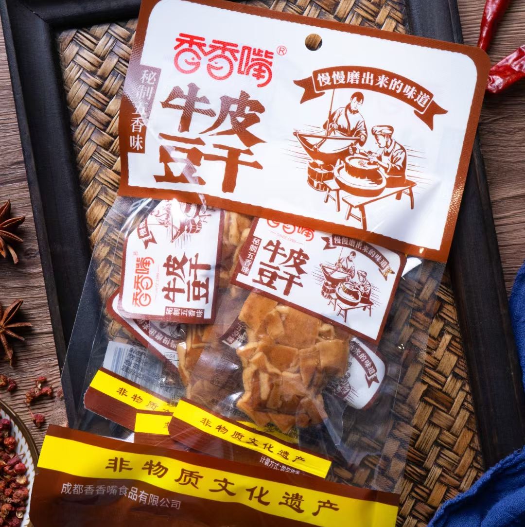 香香嘴豆腐干,精选优质大豆,通过传统卤制工艺与现代生产技术精制而成,口感细腻爽滑、味道麻辣鲜香。