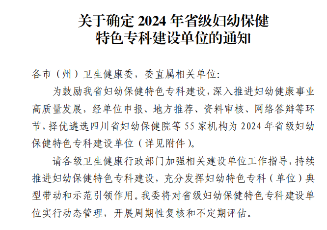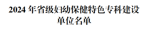2024年省级妇幼保健特色专科