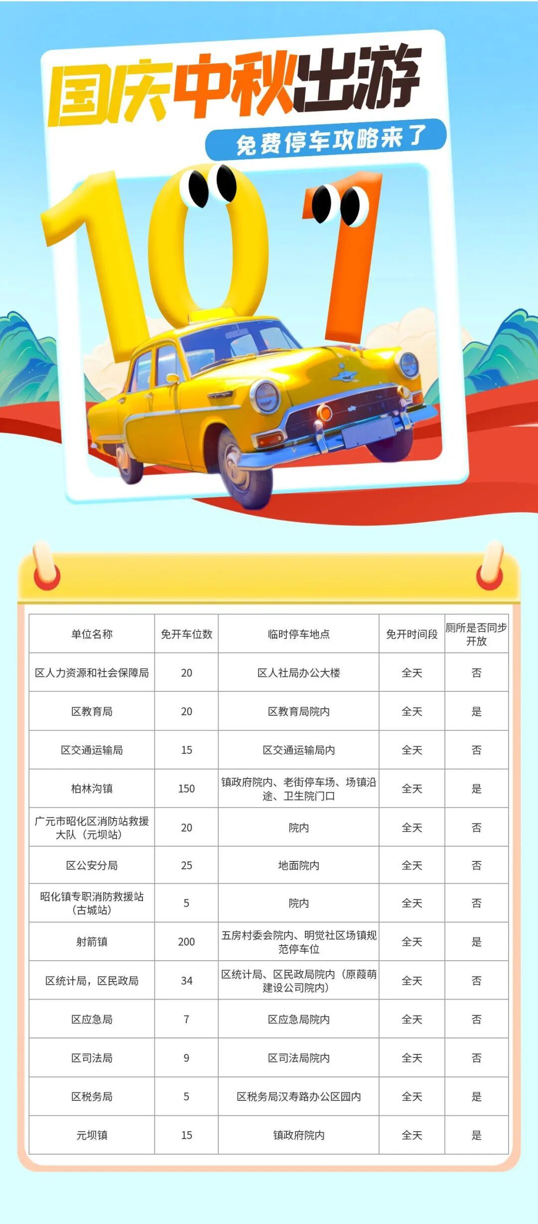 速览!国庆中秋假期,昭化这些地方免费停车!