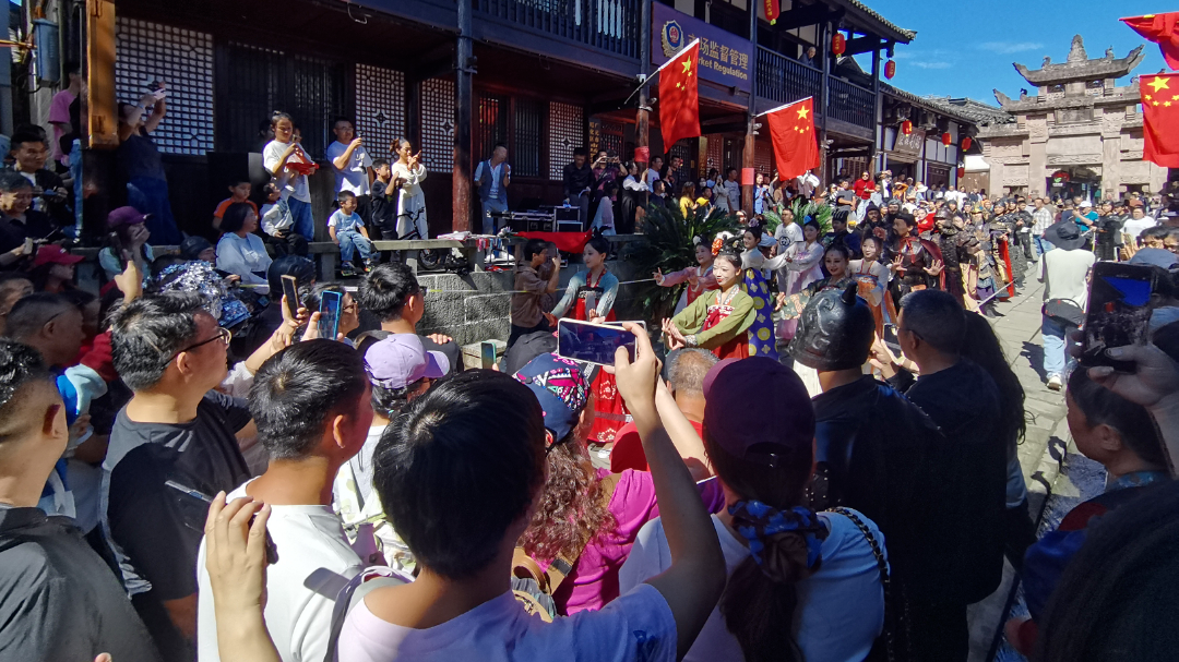 创新打造多元打卡场景,设置国庆主题合影点,汉寿庭院、怡心园等古建成为古风摄影热门地;湿地公园设6个氛围打卡点,开展律动湿地音乐会、草坪音乐会,满足个性化拍照需求。夜间持续发力“夜经济”。以滨河路为核心打造480米“烟火元坝”特色街区,涵盖美食区、水岸夜市区、时代留影区等;古城延长店铺营业时间,推出灯光秀、美食市集,与《葭萌春秋》夜场演艺形成联动,假期夜间客流占比达35%,成为本地群众与游客休闲新地标。此外,区域联动成效显著,推出“昭化古城+剑门关”不同价位联票套餐2组,假期累计核销联票超1300张,实现跨景区客流互导。