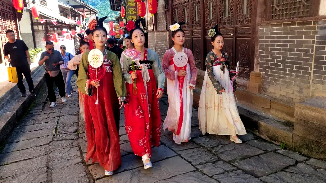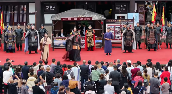 以“红耀昭化 礼赞中华”为主题,在昭化古城常态化开展刘备入城、盛世鼓韵、千年城阙·万里霓裳、县令审案等10余项沉浸式演艺,串联县衙、考棚、文庙等景点,通过解谜、剧情演绎让游客“穿越”三国。乐楼每日上演宫廷乐舞、杂技杂耍及新创节目《葭萌早市》《背河》,《葭萌春秋》沉浸式演艺单日最高演出3场次,非遗项目进景区形成亮点——射箭提阳戏、川北雷棚评书、陈氏彩绘彩塑、薛氏糖画等通过巡游展演、现场制作,让游客近距离感受传统技艺魅力,累计吸引超20万人次参与体验。
