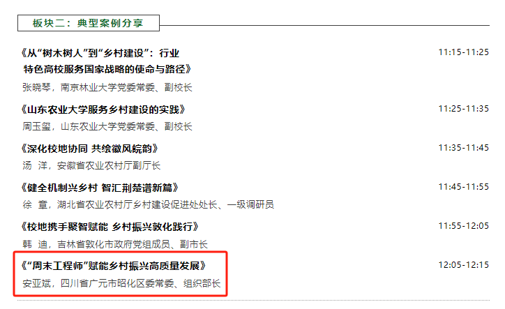 西安建筑科技大学党委书记朱晓渭,清华大学党委副书记许庆红,陕西省农业农村厅厅长孙矿玲作开幕致辞,农业农村部有关司局领导讲话,来自全国各地的相关高校、各级政府和企业代表近200人参会,昭化区作为四川唯一县区围绕《“周末工程师”赋能乡村振兴高质量发展》作交流发言。