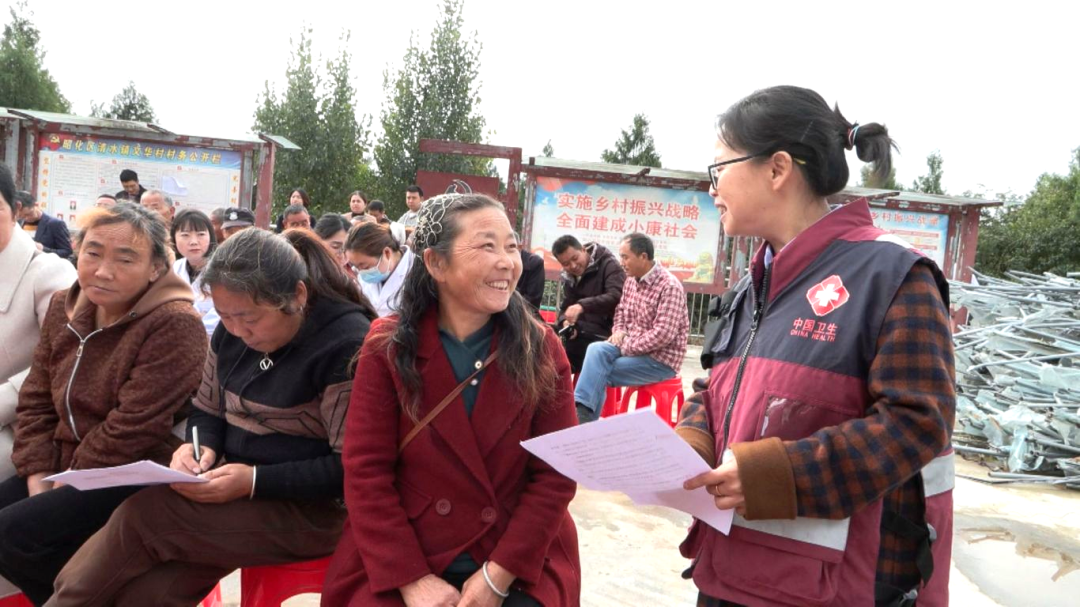 在清水镇文华村,薛春香正借着“体重管理年”活动的契机,向村民们发放健康手册,科普体重管理知识。通俗易懂的讲解让现场群众听得专注,不时点头表示认可。