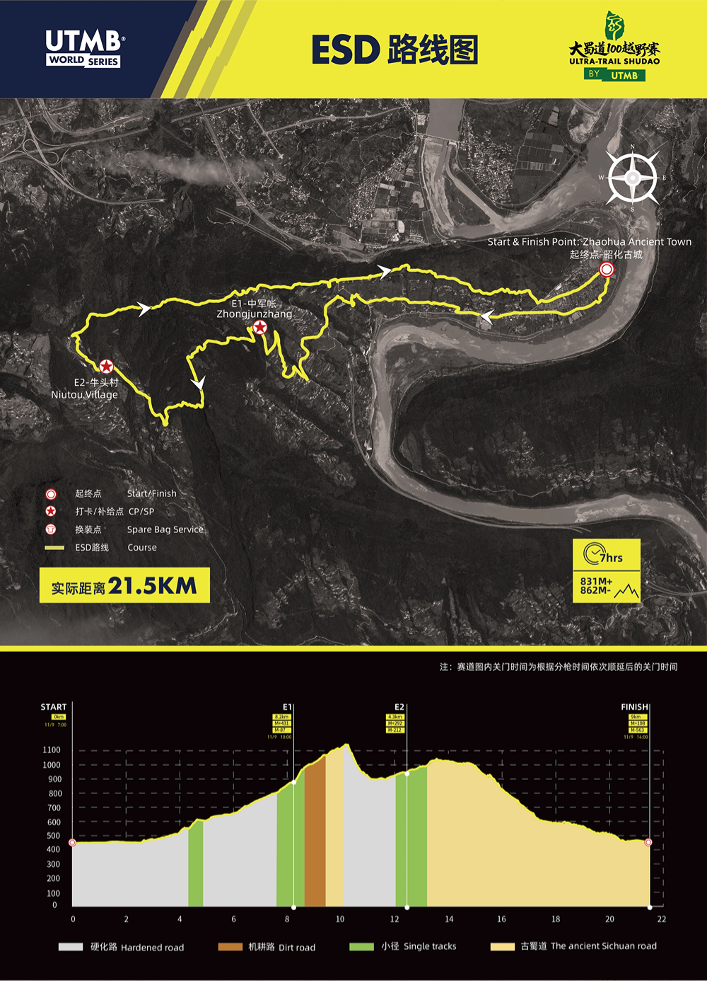 3. 山地越野赛21.5公里组(ESD)个人赛:昭化古城—战胜村—牛头村—剑昭路—昭化古城游客中心