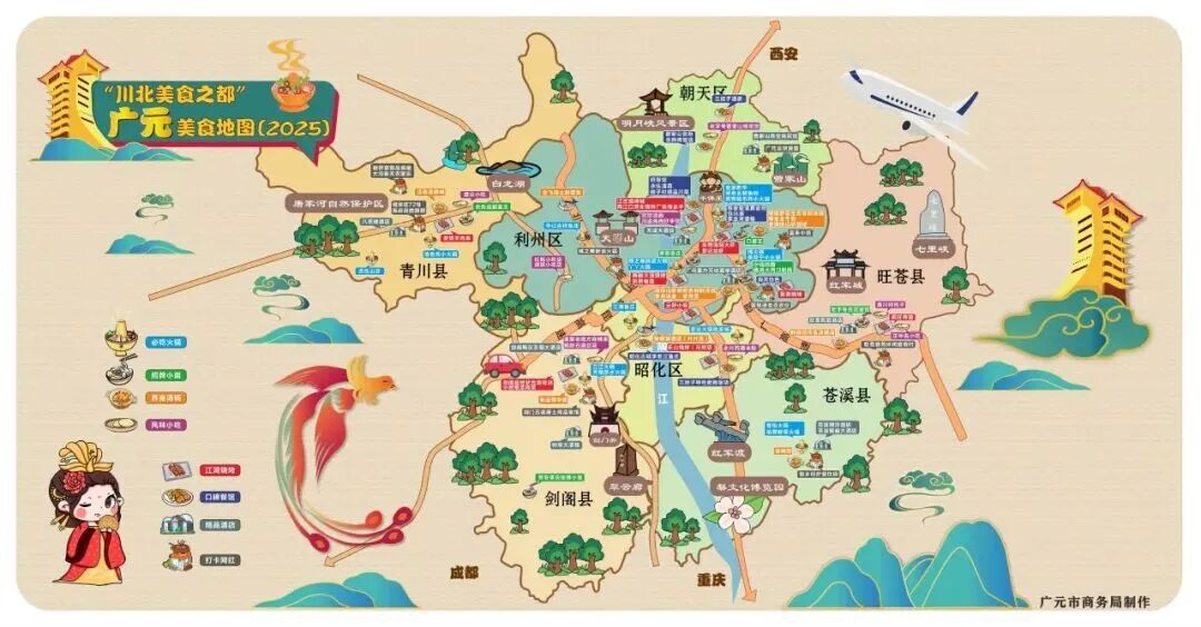 广元美食融合了川菜麻辣鲜香与陕甘风味技艺,打造出独具特色的“广元好味”美食品牌。这份地图整合了全市89家餐饮名店的信息,提供精准的“美食导航”,助你轻松找到中子麻辣鸡、剑阁麻辣烫、两湖生态鱼等地方特色菜肴,体验最地道的广元风味。