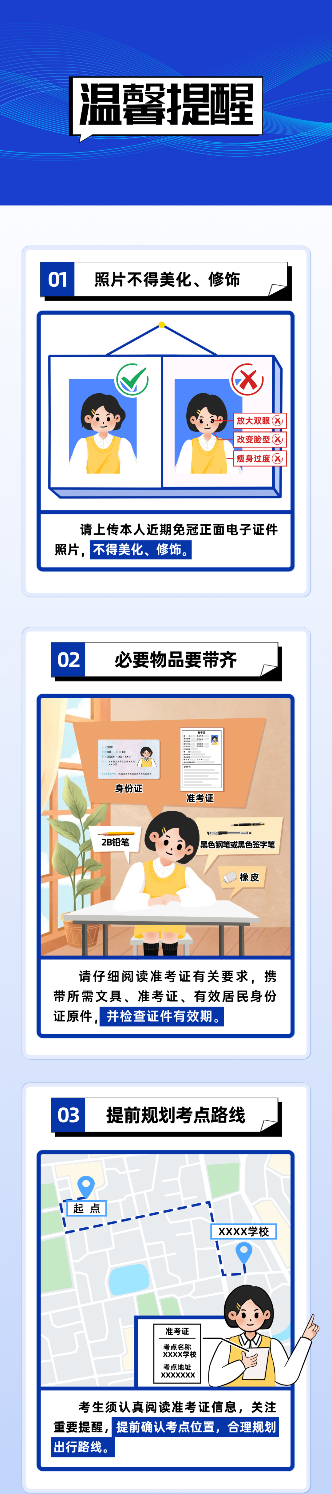 特别提醒:近期,广元城区多处道路升级改造,对出行有一定影响。建议考生考前一天熟悉考点位置,提前做好路线规划,考试当天提前选择好交通工具前往考点。