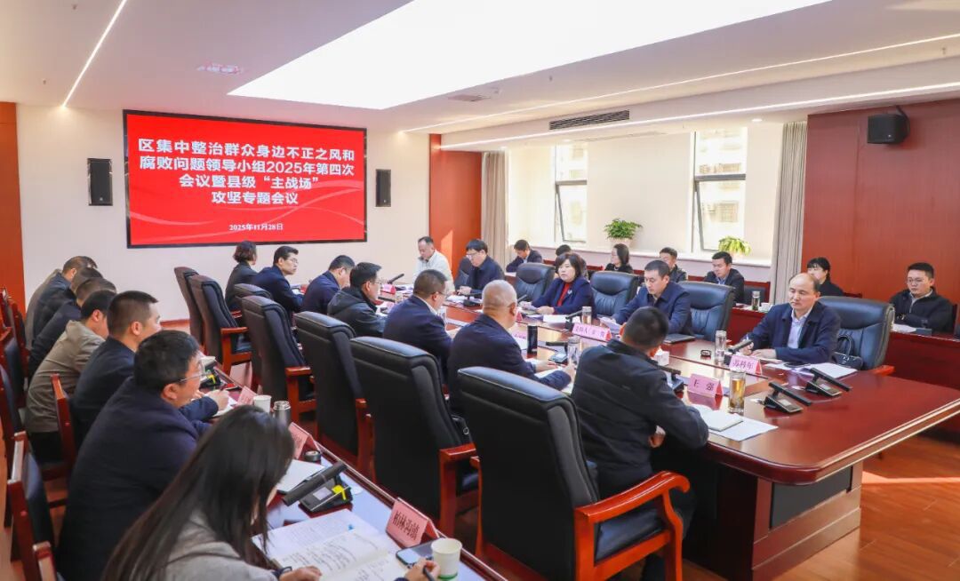 11月28日,全区集中整治群众身边不正之风和腐败问题领导小组2025年第四次会议暨县级“主战场”攻坚专题会议召开。区委书记、领导小组组长王静出席会议并讲话。区委副书记、区长、领导小组组长辛俊主持会议,区委副书记张玉全出席会议。