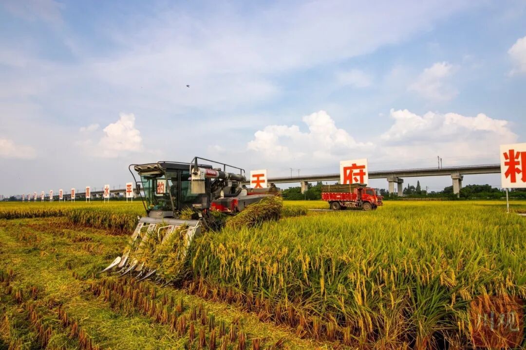 2025年8月27日,眉山市东坡区太和镇永丰村千亩水稻开镰收割 图据川观新闻