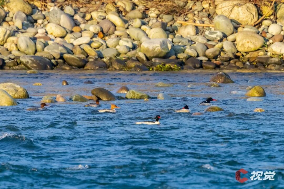中华秋沙鸭飞抵都江堰越冬 摄影/C视觉 刘建强