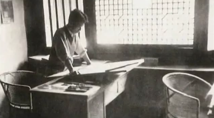 梁思成在李庄月亮田营造学社绘图 图据中国李庄微信公众号