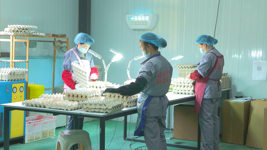 产业兴也带来了就业旺。在四川信德农牧有限公司的车间,红岩镇天星村村民刘玉蓉正仔细检查鸡蛋清洗效果,脸上满是笑容。如今,像她一样在家门口实现就业的当地村民越来越多。该公司通过“企业+产业”的发展模式,不仅为周边群众提供了稳定的就业岗位,更带动了上下游产业发展,先后直接带动就业200余人次,间接带动就业5000余人次,让农户年均增收5200元以上。