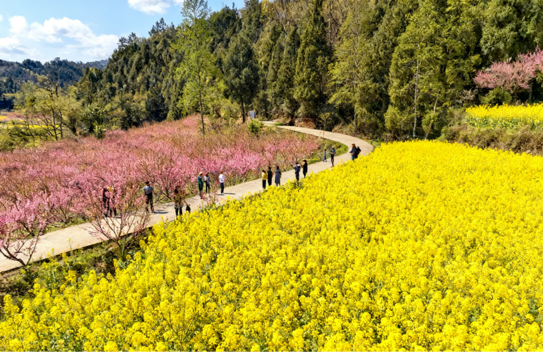曾经的泥泞村道,如今已“改头换面”。3公里村主干道不仅实现了硬化,更通过精心设计,两侧栽种了260亩桃树,并在沿线田间轮作绚丽的油菜花,形成了一条桃红菜绿的“景观彩化带”,真正将乡间小路变成了村民和游客赏心悦目的“风景线”。针对“夜间无光”的老大难问题,村“两委”多方协调,累计安装了137盏太阳能路灯。现在,每当夜幕降临,盏盏路灯如繁星点亮村庄,72岁的张奶奶感慨:“以后再也不用摸黑走夜路了,晚上跳广场舞、串门子,心里都踏实!”