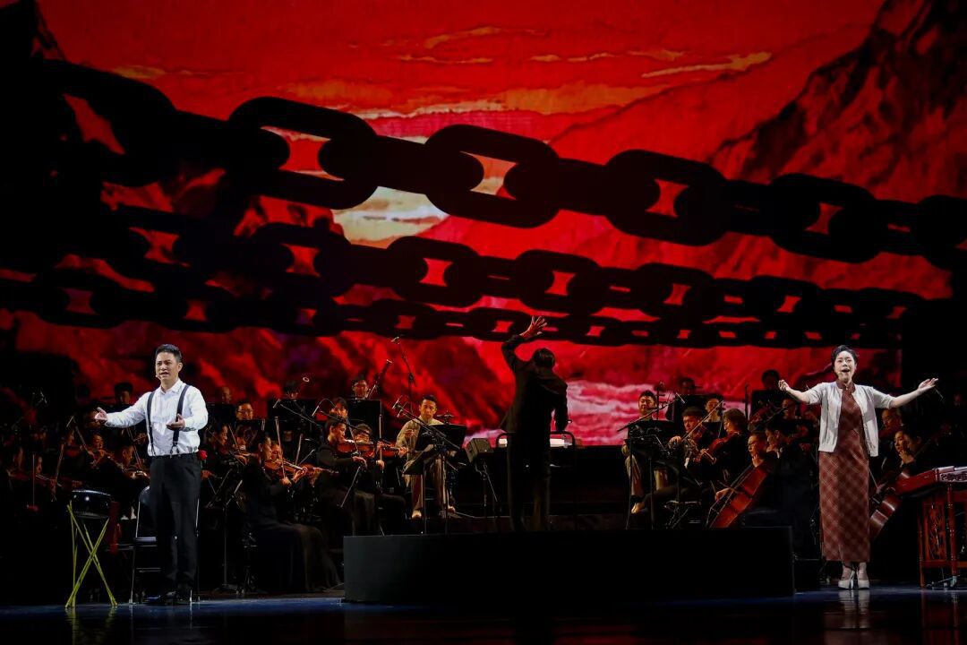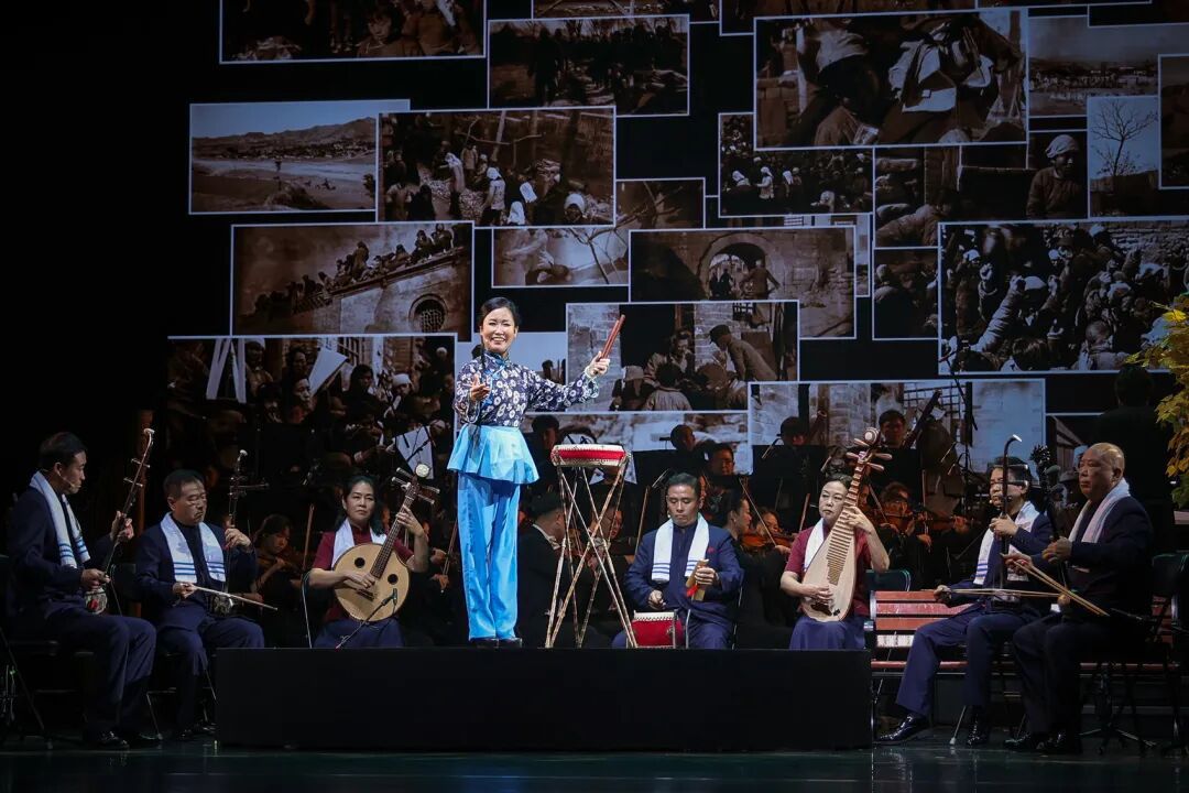 以艺术手段烘托感染力。曲艺,注重艺术形式叠加,能让细节更显张力。在《伊莎白》中融合了12种曲艺形式,均来自伊莎白工作、生活过的地方,它们交相辉映,让观众更快速地理解主题和场景。例如,以四川清音的婉转曲调演绎其童年成都记忆,以湖北大鼓的铿锵豪迈刻画武汉抗战岁月,以陕北说书的高亢激昂诠释延安精神,以京韵大鼓的醇厚深沉抒发对伴侣的生死思念,四川金钱板的 “打板节奏”、苏州评话的“说书人叙事”、快板书的“明快韵律”……均和片段情境完美契合,以艺术情绪带动情感链接。五个舞台分区的巧思和交响乐队的加入,极大地增强了艺术表现力与情感共鸣。