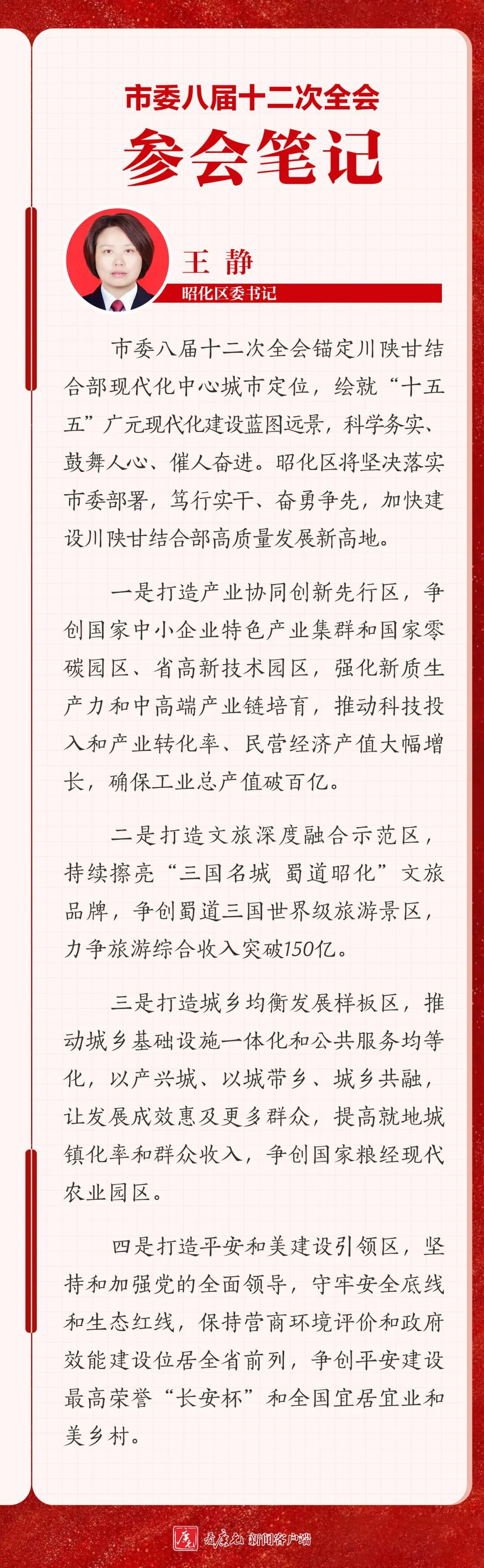 参会笔记丨昭化区委书记王静:产业驱动 全面崛起 建设川陕甘结合部高质量发展新高地