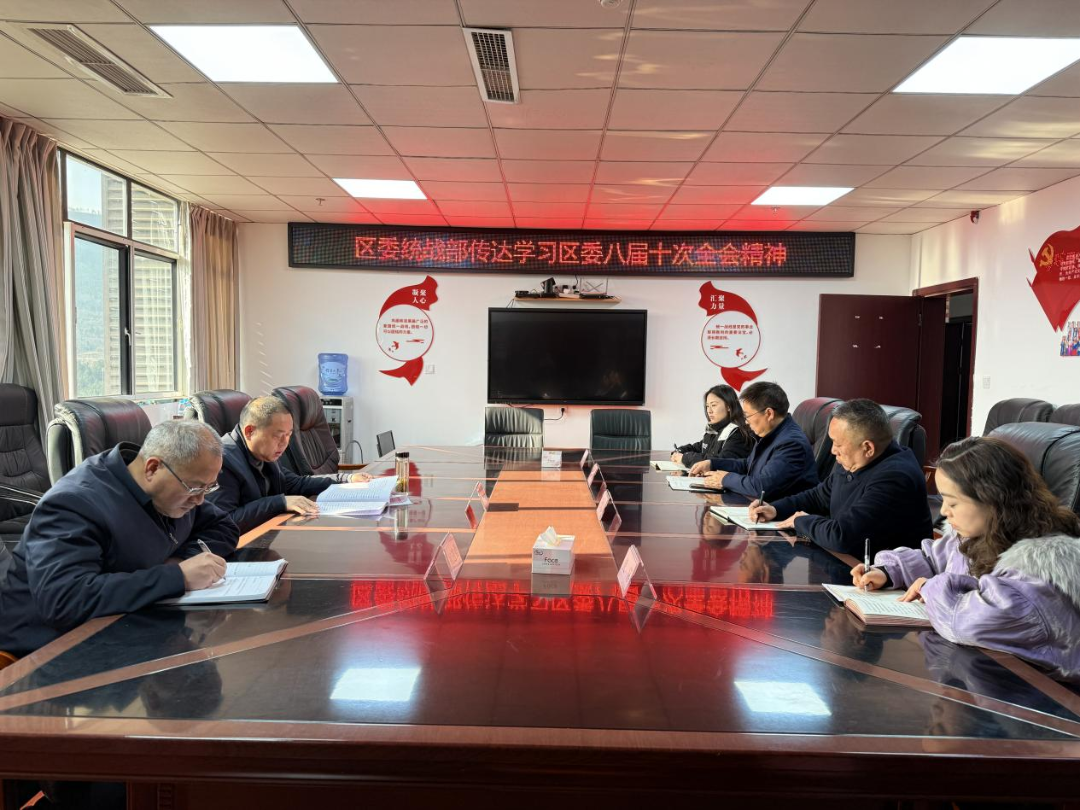 会议要求,要把学习贯彻区委八届十次全会精神作为重大政治任务,切实把思想和行动统一到区委决策部署上来,自觉将统战工作置于全区发展大局中思考和推进。要深化学习,引导广大统战成员深刻领会区委决策部署,筑牢共同思想政治基础,汇聚最广泛力量。要聚焦中心,鼓励统战成员在产业发展、乡村振兴等领域建言献策,完善政企沟通平台,进一步优化营商环境,为高质量发展蓄势赋能。要坚持党的全面领导,抓好统战工作责任制落实,完善大统战工作格局,确保党的意志和主张在统一战线各领域各方面得到坚决贯彻落实,为谱写中国式现代化昭化新篇章贡献统战力量。