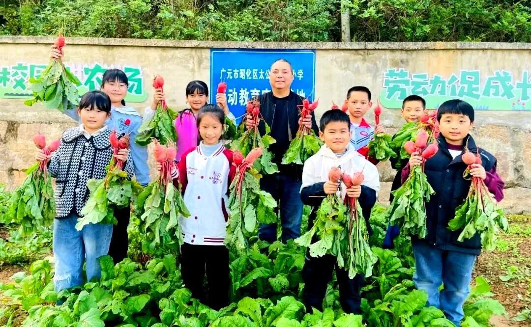 沐浴着晨光,走进广元市昭化区王家小学,在操场的一角,紧挨着围墙处,一大片菜园映入眼帘。菜园里种满了白菜、萝卜、豌豆尖等时令蔬菜,随着太阳渐渐升高,裹在菜叶表面的一层白霜开始融化,露出嫩绿的脸庞来……教学楼里,隐隐传来的悠扬葫芦丝声,仿佛在为这冬日的美景谱曲伴奏。