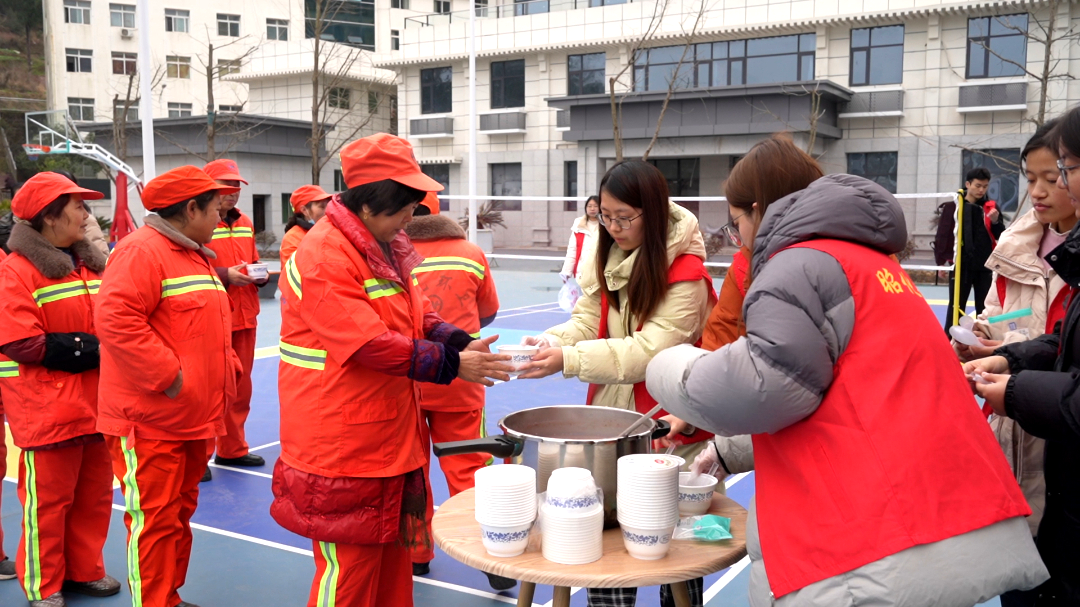 “腊八一过就是年,喝着这碗甜粥,心里暖乎乎的,感觉新年越来越近,我们干活也更有劲头了。”昭化区环卫工人杨兰华笑着说。