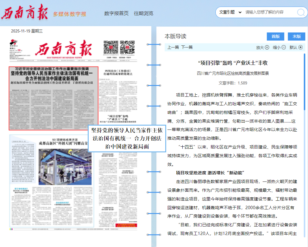 2025年11月19日【西南商报(头版)】“项目引擎”轰鸣 “产业沃土”丰收 四川省广元市昭化区绘就高质量发展新图景