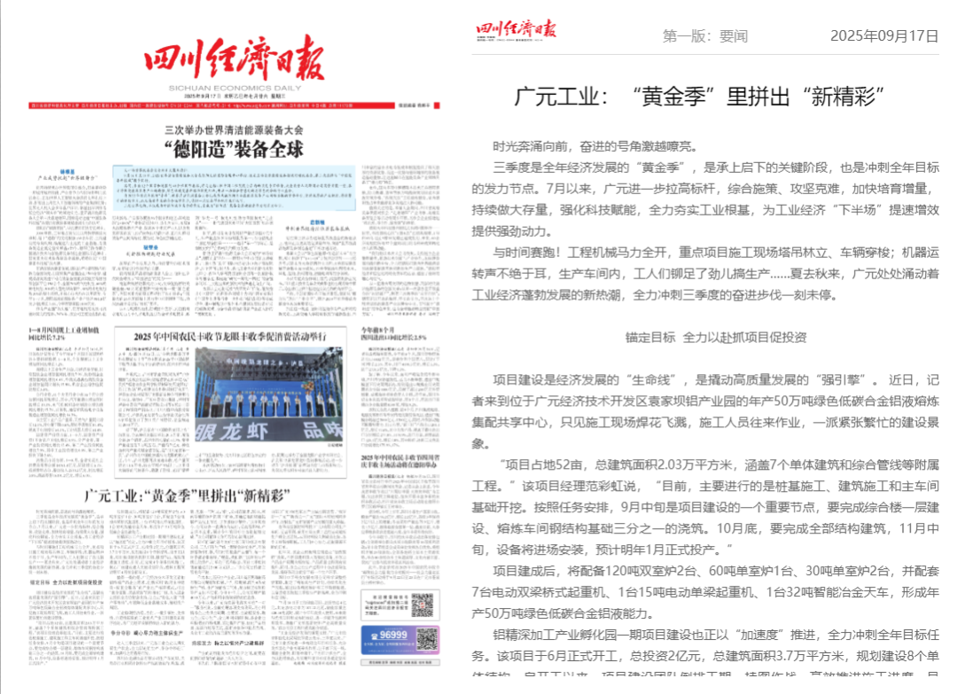 2025年9月17日【四川经济日报(头版)】广元工业:“黄金季”里拼出“新精彩”