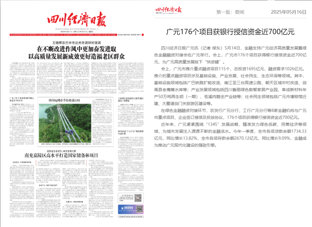 2025年5月16日【四川经济日报(头版)】广元176个项目获银行授信资金近700亿元