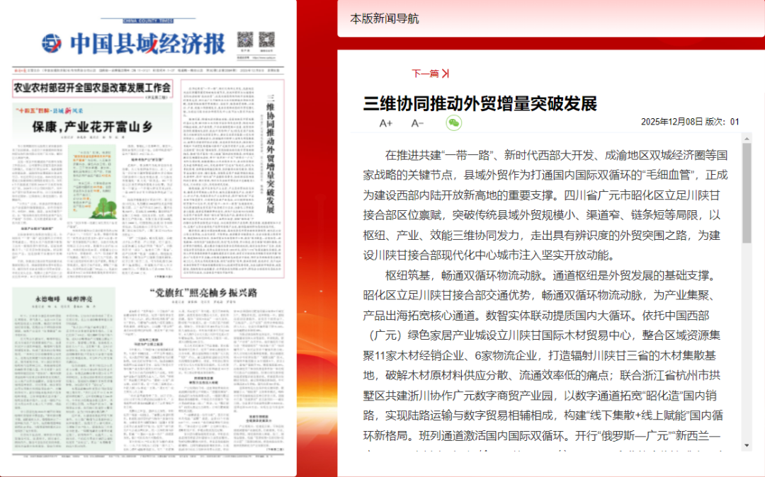 2025年6月2日【中国县域经济报(头版)】“昭化造” 销路宽