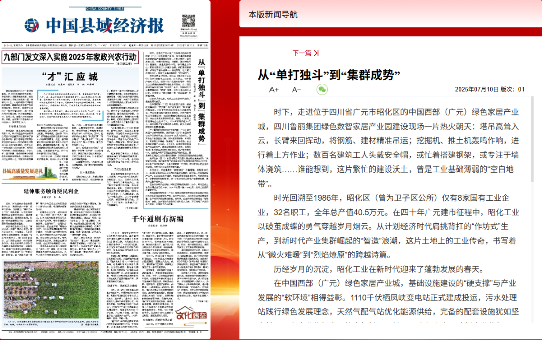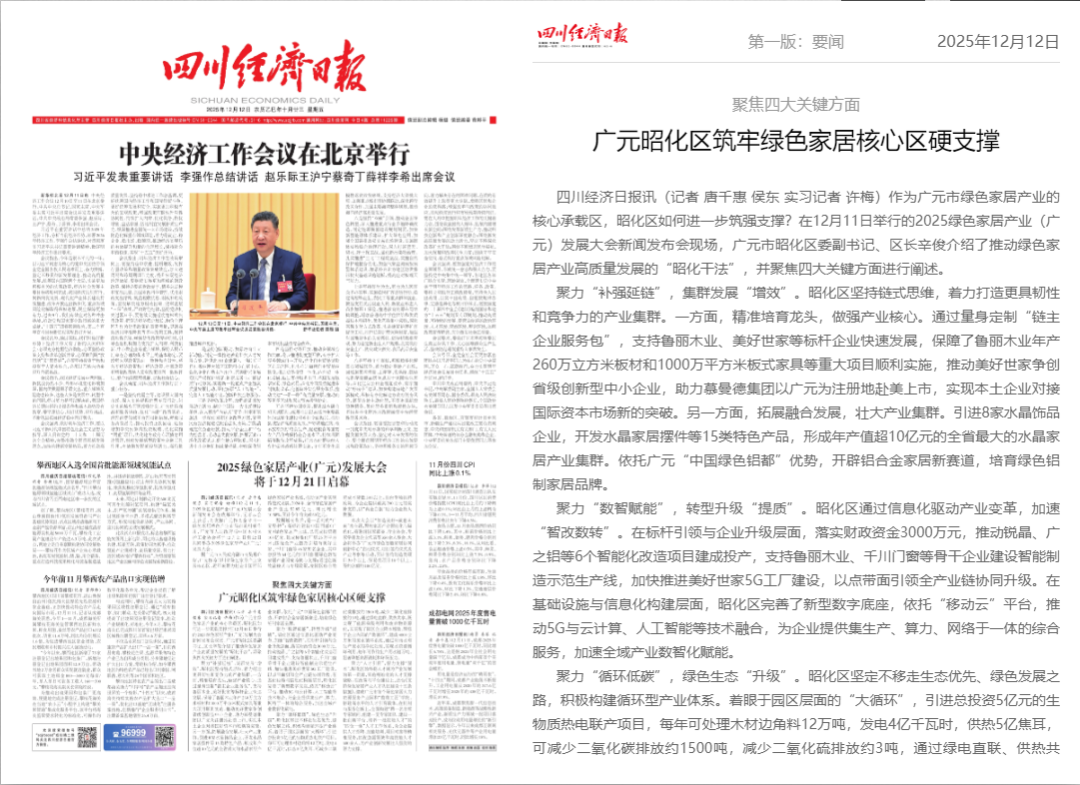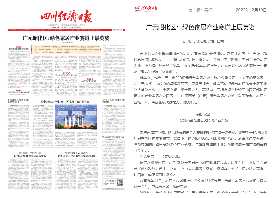 2025年12月19日【四川经济日报(头版头条)】广元昭化区:绿色家居产业赛道上展英姿