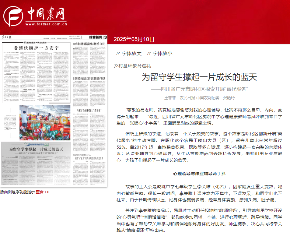 2025年5月10日【农民日报】为留守学生撑起一片成长的蓝天——四川省广元市昭化区探索开展“替代服务”