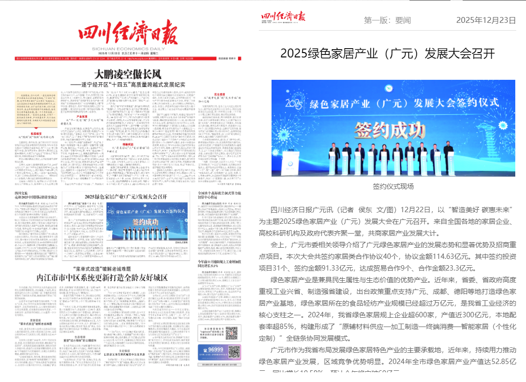 2025年12月23日【四川经济日报(头版)】2025绿色家居产业(广元)发展大会召开
