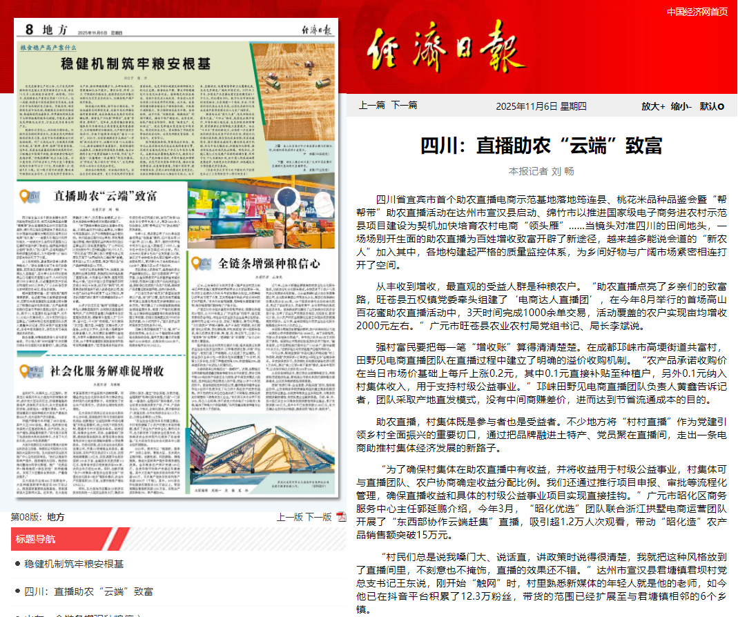 2025年11月6日【经济日报】四川:直播助农“云端”致富
