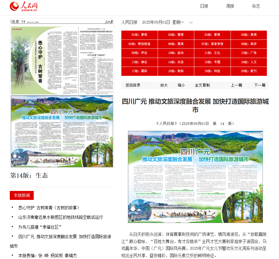 2025年9月1日【人民日报】四川广元 推动文旅深度融合发展 加快打造国际旅游城市