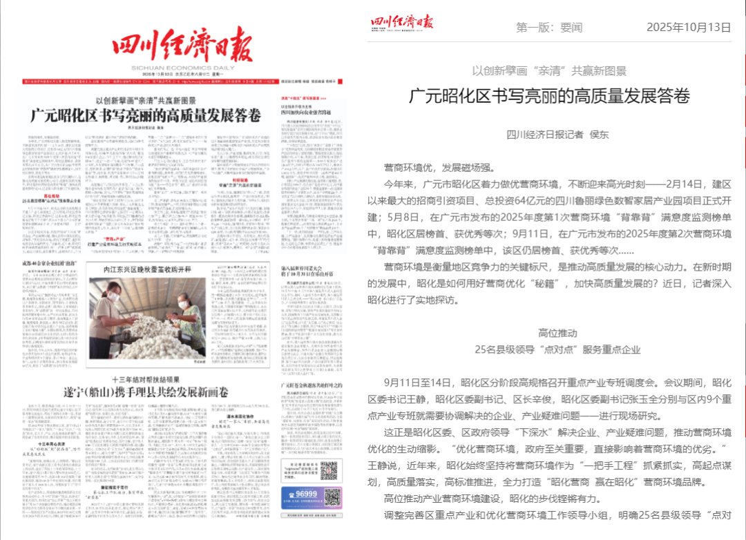 2025年10月13日【四川经济日报(头版头条)】广元昭化区书写亮丽的高质量发展答卷