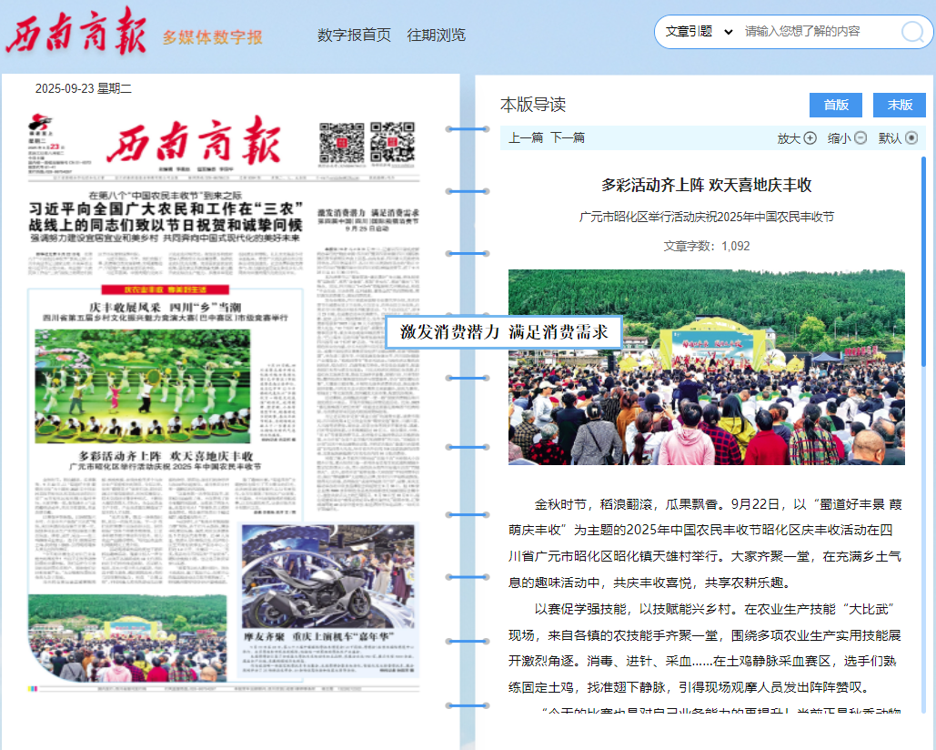 2025年9月23日【西南商报(头版)】多彩活动齐上阵 欢天喜地庆丰收 广元市昭化区举行活动庆祝2025年中国农民丰收节