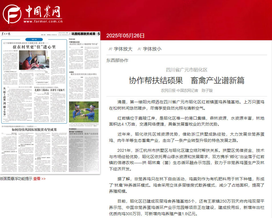 2025年5月26日【农民日报】四川省广元市昭化区协作帮扶结硕果 畜禽产业谱新篇