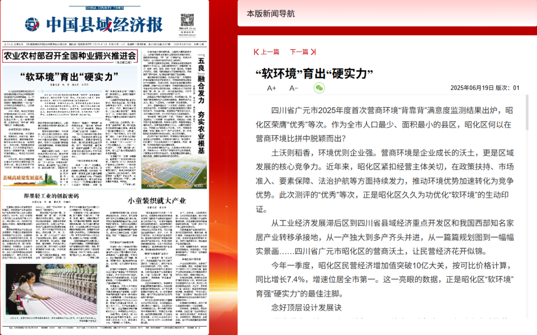 2025年6月19日【中国县域经济报(头版头条)】“软环境”育出“硬实力”