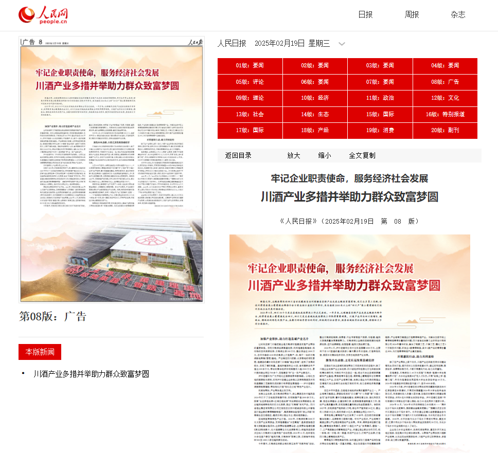 2025年2月19日【人民日报】牢记企业职责使命,服务经济社会发展 川酒产业多措并举助力群众致富梦圆