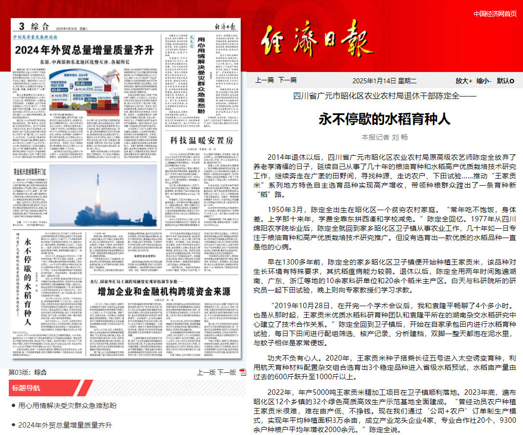 2025年1月14日【经济日报】四川省广元市昭化区农业农村局退休干部陈定全——永不停歇的水稻育种人
