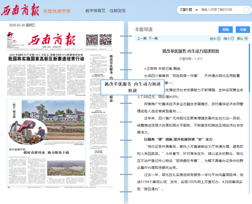 2025年2月28日【西南商报(头版)】抓改革优服务 内生动力加速释放